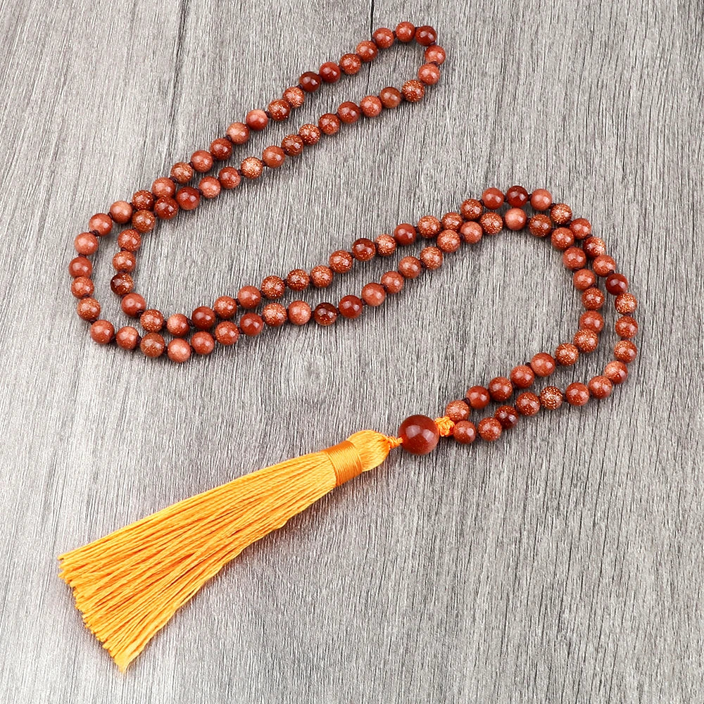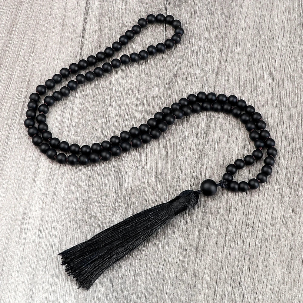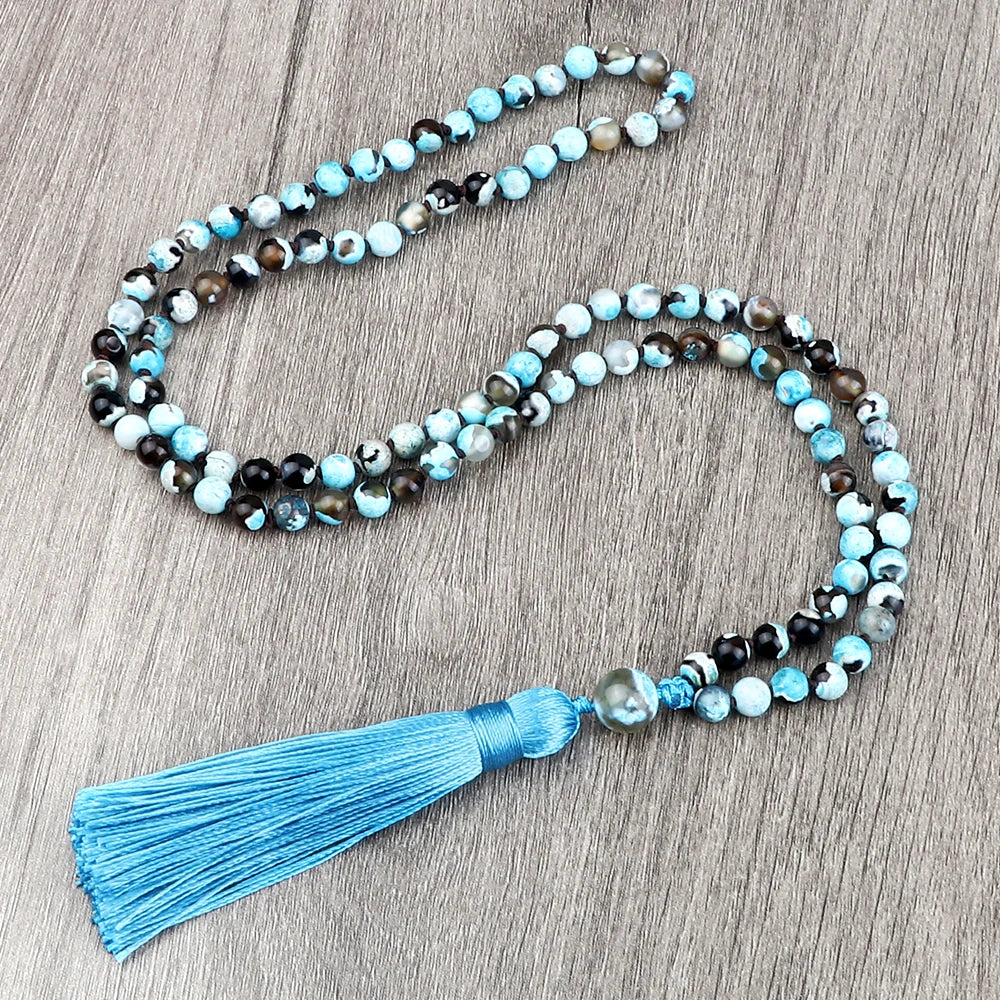 108 Mala Beaded Tassel Necklace Tiger Eyes Turquesa Meditation Yoga Jewelry Women Malachite Bohemian Ethnic Amazonite Necklace