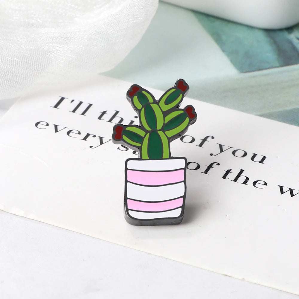 12 Styles Cute Cactus Enamel Pins Metal Plant Brooches Women Men Jeans Coat Lapel Pin Badges Kids Backpack Decoration Jewelry