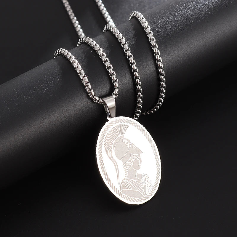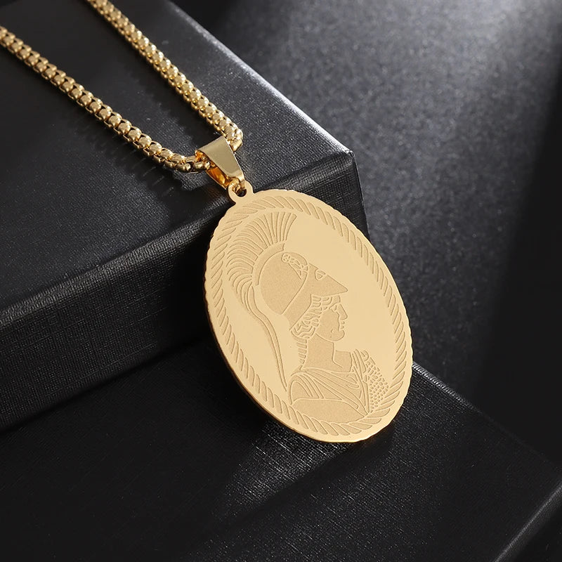Ares Spartan Helmet Necklace Vintage Charm Handmade Statement Pendant for Men Women Punk Hip Hop Party Prom Jewelry Gifts