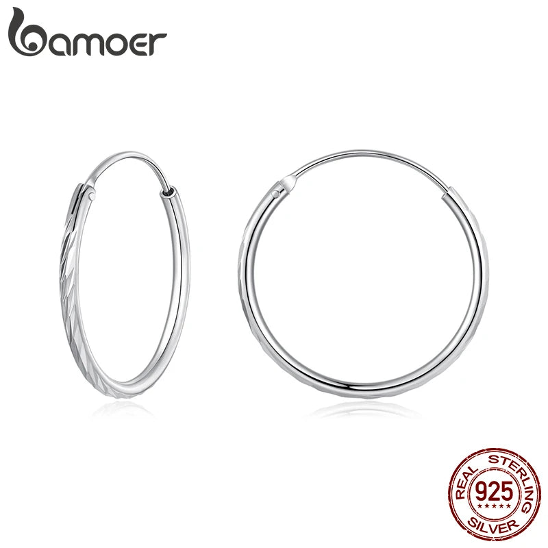 BAMOER 925 Sterling Silver Engraved Hoop Earrings for Women, Lightwieght Big Hoop Earrings Hypoallergenic Trendy Hoop Earrings