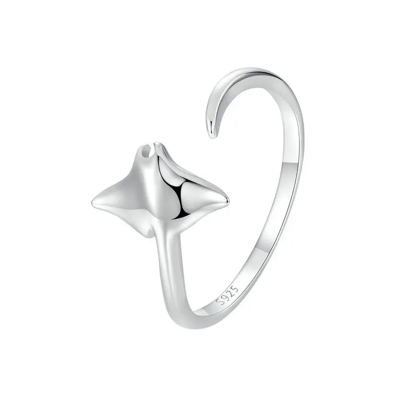 BAMOER 925 Sterling Silver Vivid Manta Open Ring Sea Animal Adjustable Ring for Women Statement Ring Jewelry Gift SCR1037-E
