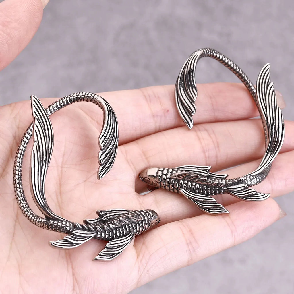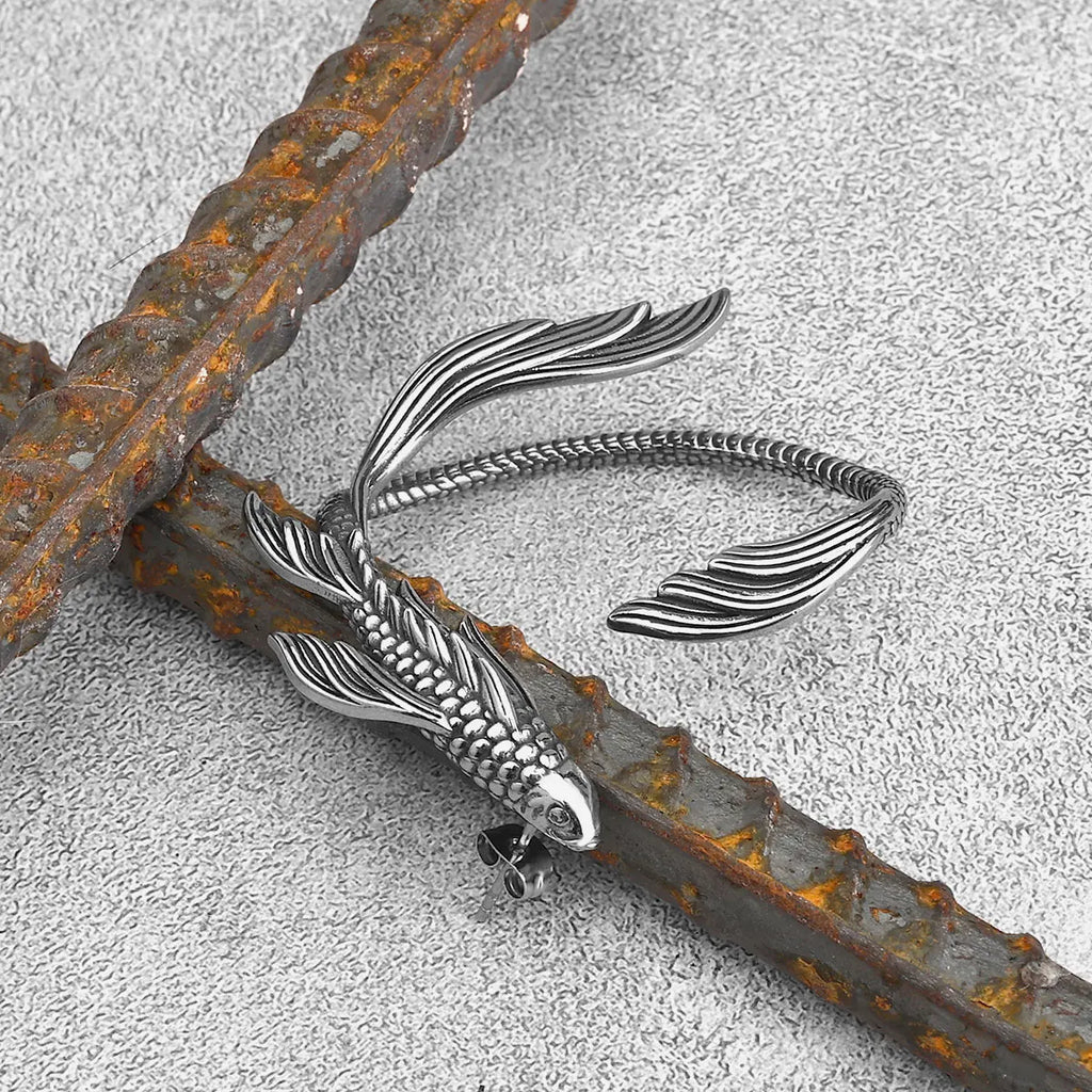 Fashion Creative Design Long Tail Fish Stud Earring Women Elf Ear Stainless Steel Jewelry Masquerade Party Earring Gift