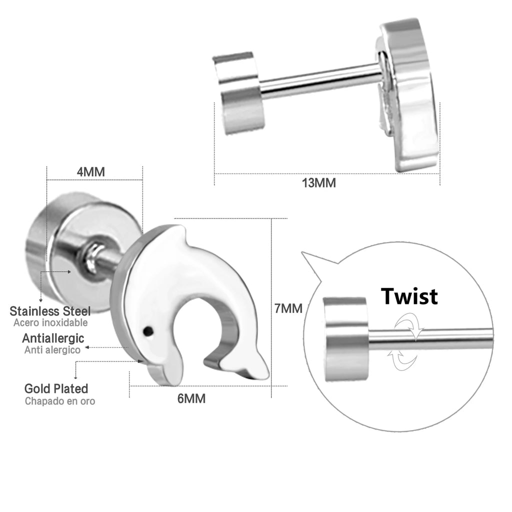 LUXUKISSKIDS Classic Stainless Steel Earrings Dolphin Stud Piercing For Woman/Girls Screw-back Pack Gold Plated Fashion Jewelry