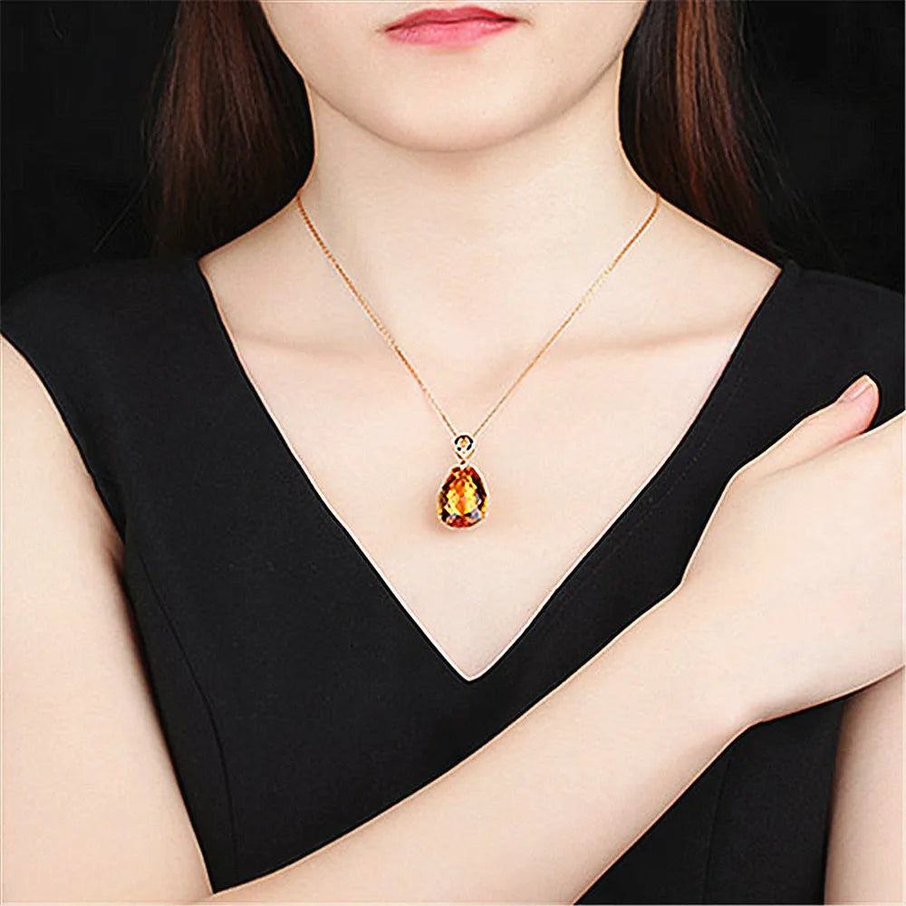 Luxury big carats water drop crystal citrine gemstones diamonds pendant necklaces for women 14k gold color jewelry bijoux gifts
