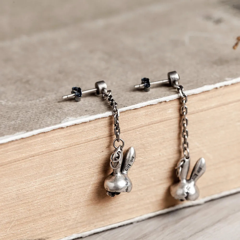 MKENDN 100% 925 Sterling Silver Creative Cute Evil Rabbit Skull Drop Earring Trendy Street Punk Style Men Women Fine Jewelry