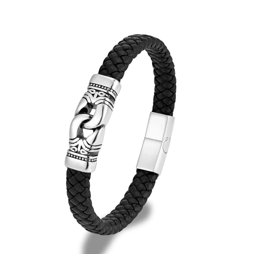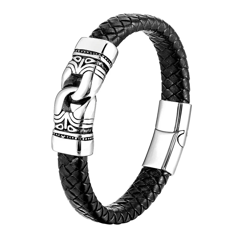 MKENDN Fashion Stainless Steel Magnetic Punk Rock Men Knot Bracelet Genuine Leather Braided Bangles Male Jewelry Accessories