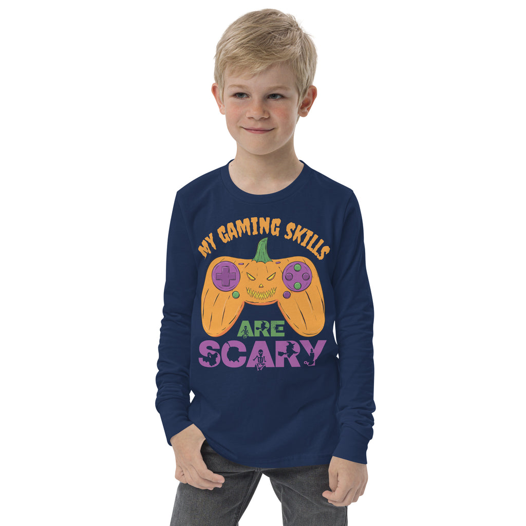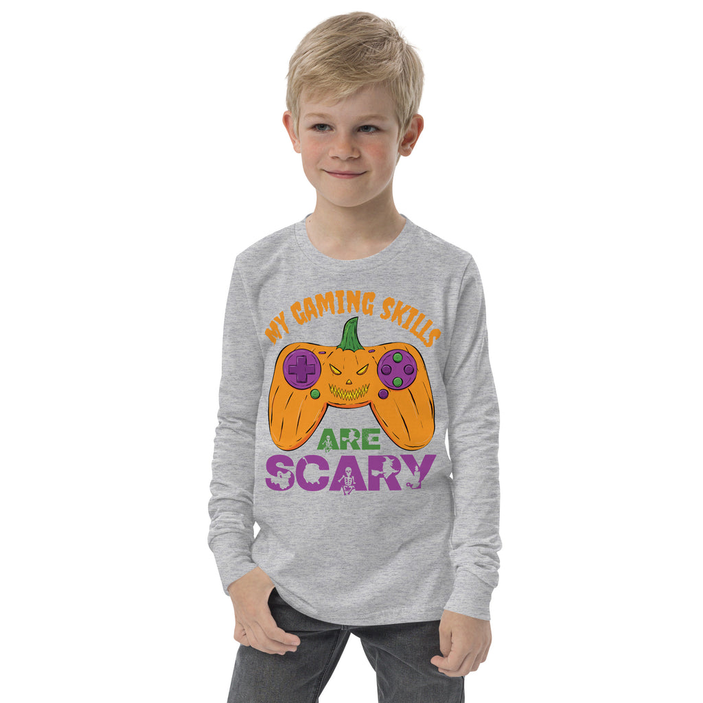 My Gaming Skills Are Scary, Funny Halloween Boys Girls Gaming Long Sleeve Shirt, Pumpkin Video Gamer Controller Tee, Halloween Gamer Costume