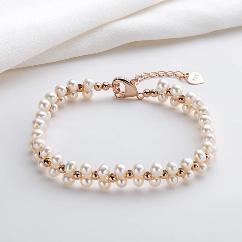 Natural Freshwater Pearl Fashion Bracelet Ladies Double Layer Elegant Bracelet 14K Gold Plated for Women Wedding Jewelry