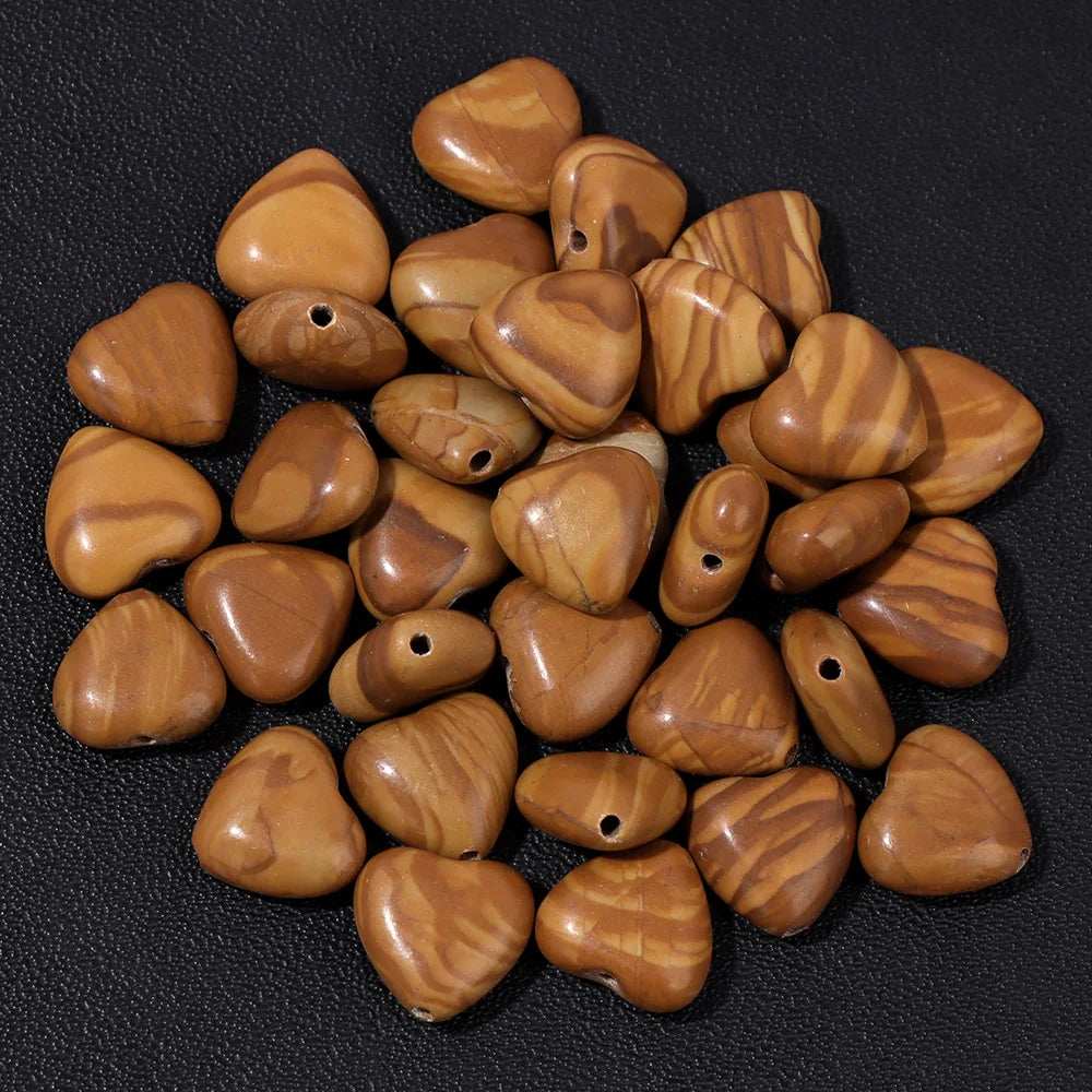 Natural Gems Heart Shape Stone Bead Central Drilled Fluorite Quartzs Loose Spacer Beads For Jewelry Making DIY Bracelet Earrings
