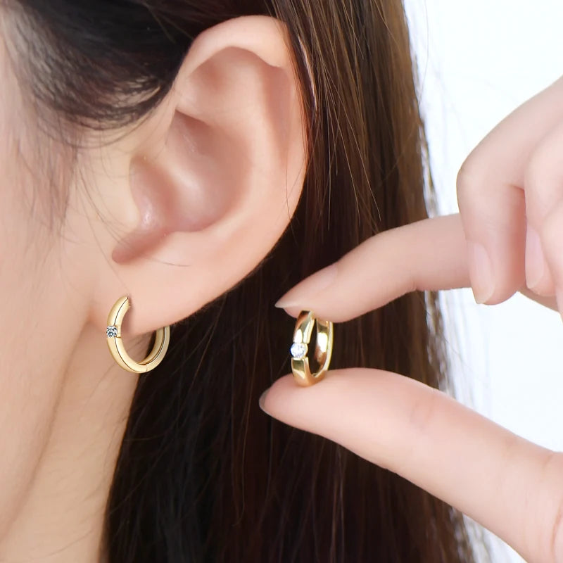 OXTAO 14K Gold Plated Moissanite Hoop Earrings Lab Diamond Simple Single Stone Stud Jewelry Gift 925 Sterling Silver for Women