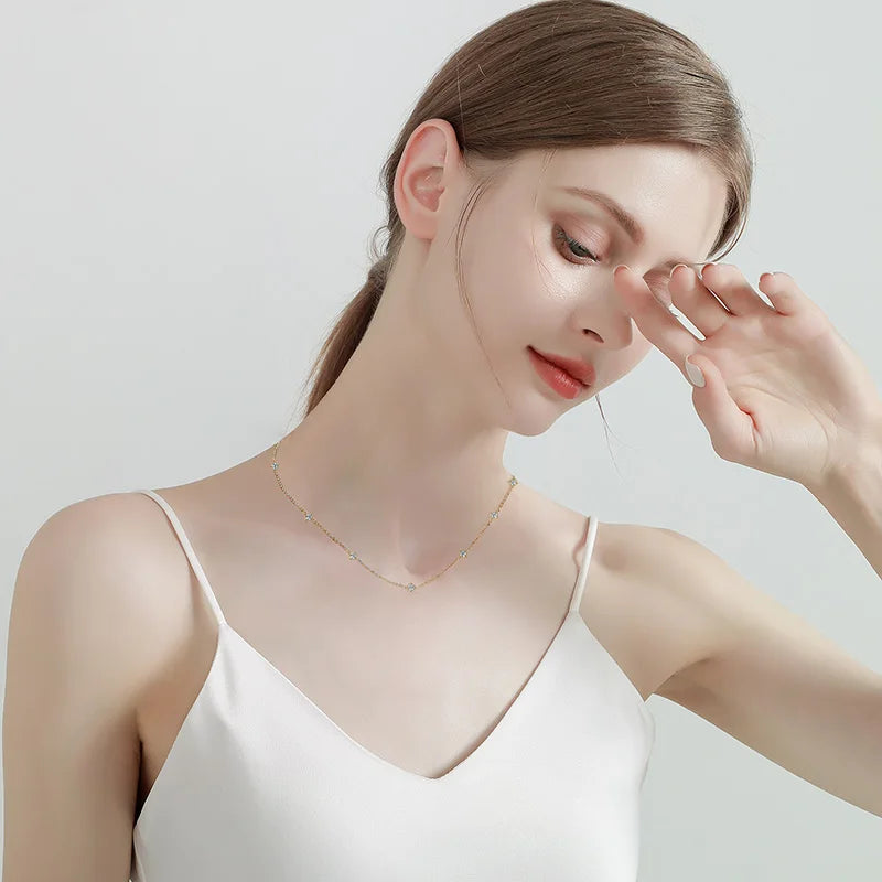 OXTAO D VVS1 3mm Moissanite Diamond Necklaces Female S925 Silver Clavicle Chain Luxury Necklace Jewelry Gift GRA Certified