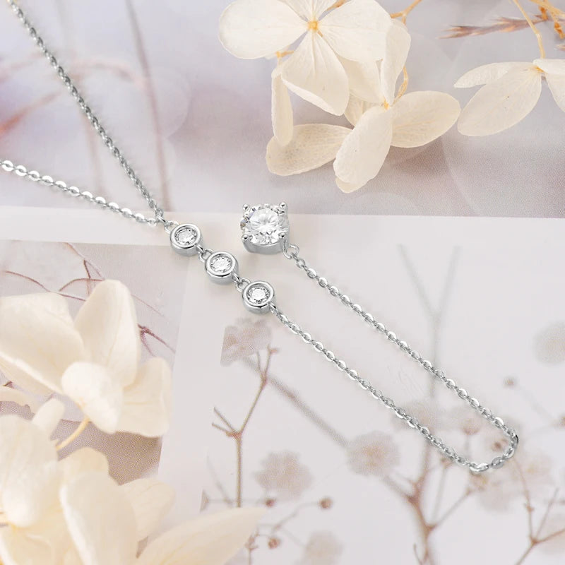 OXTAO Real 925 Sterling Silver Y-Shaped Necklace D VVS1 Moissanite Pendant Necklace for Women Birthday Jewelry Gift Certified