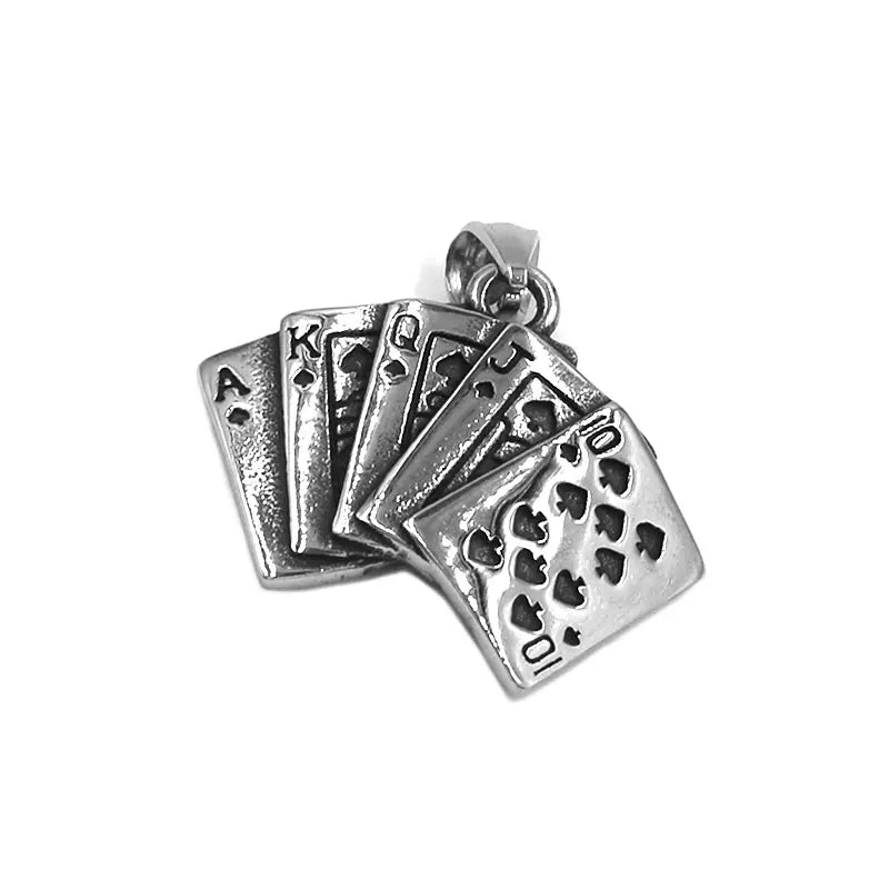 Poker Straight Flush Spades Pendant Stainless Steel Jewelry Casino Playing Cards Biker Jewelry Necklace SWP0520A