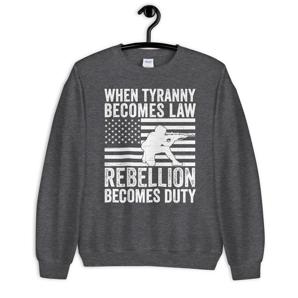 Tyranny Sweater, Rebellion Sweatshirt, When Tyranny Becomes Law, Rebellion Becomes Duty, 1776 Shirt, Thomas Jefferson, Political Shirts