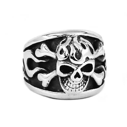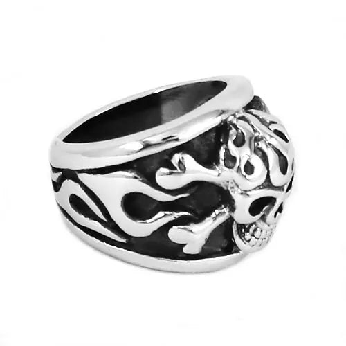 Vintage Bones Flame Skull Ring Stainless Steel Jewelry Pirate Skull Biker Mens Rings Wholesale SWR0610A