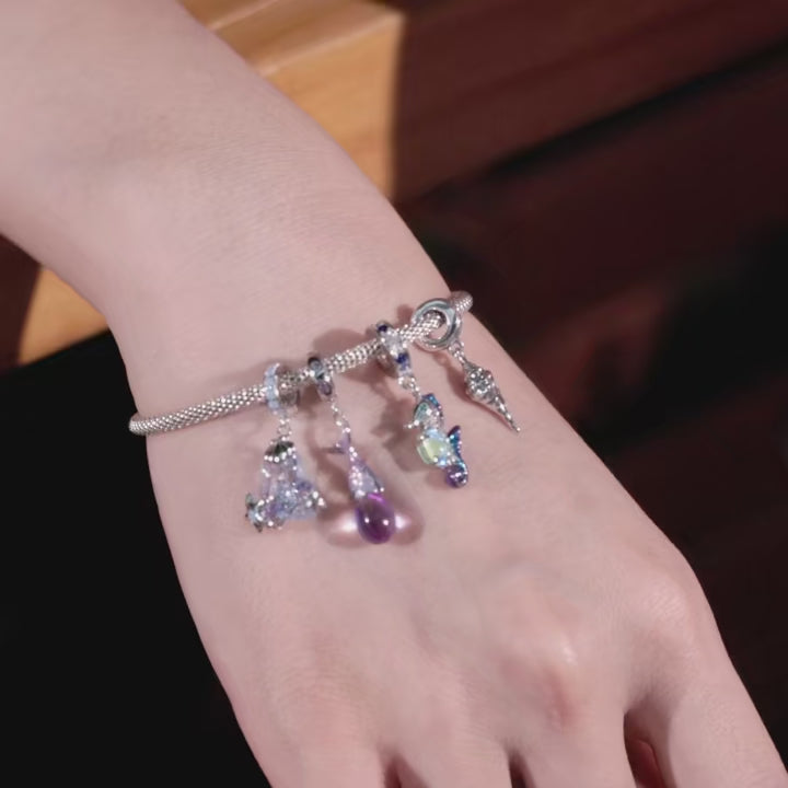 WOSTU 925 Sterling Silver Purple Ocean Charm Enamel Mermaid Tear Pendant Sea Fish Scale Fit Original Bracelet Bangle DIY Gift