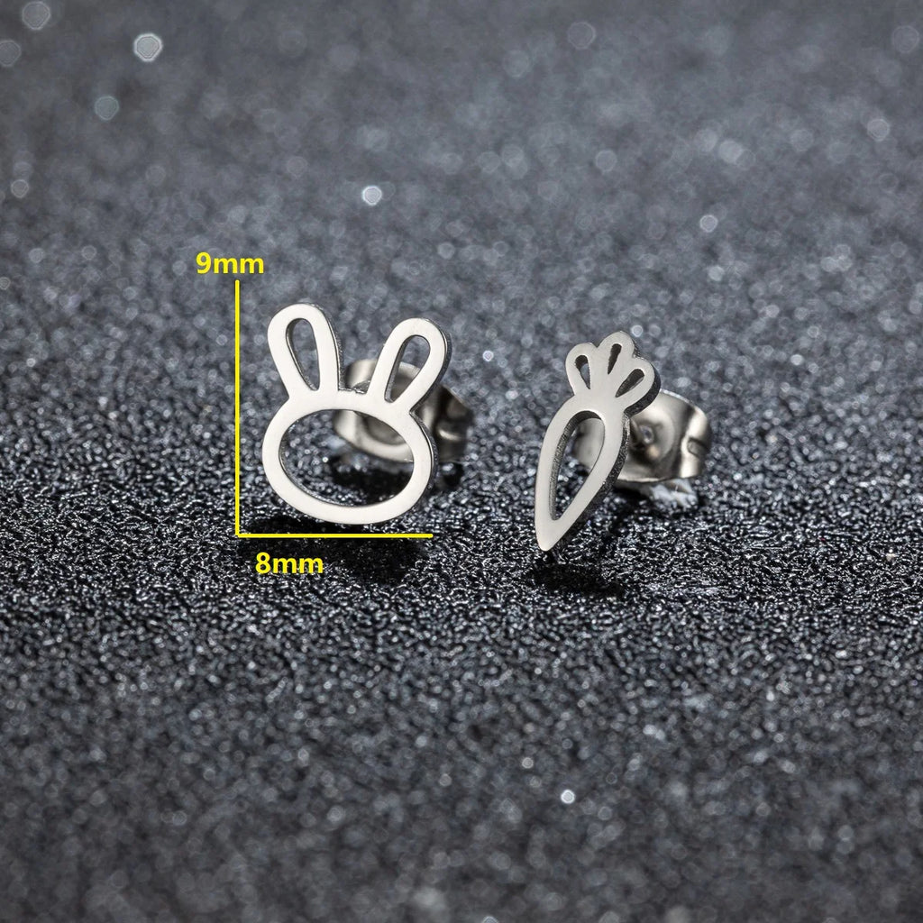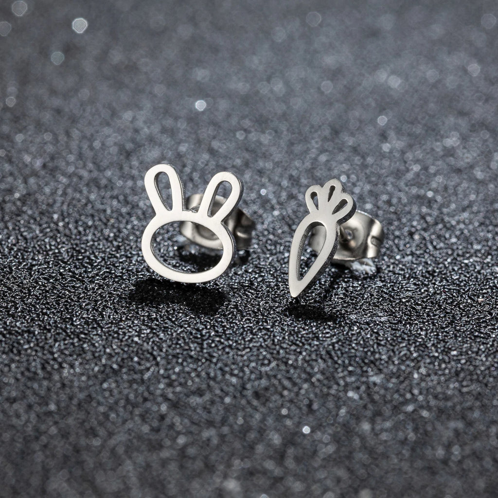 1Pair Fashion Simple Earrings Women Cute Rabbit And Carrot Asymmetric Stud Earring Anti-allergy Accessories