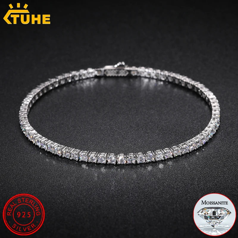 2/2.5mm Full Moissanite Tennis Bracelet for Women Pass Diamond Tester 925 Sterling Silver 18K Gold Plated HipHop Men Jewelry