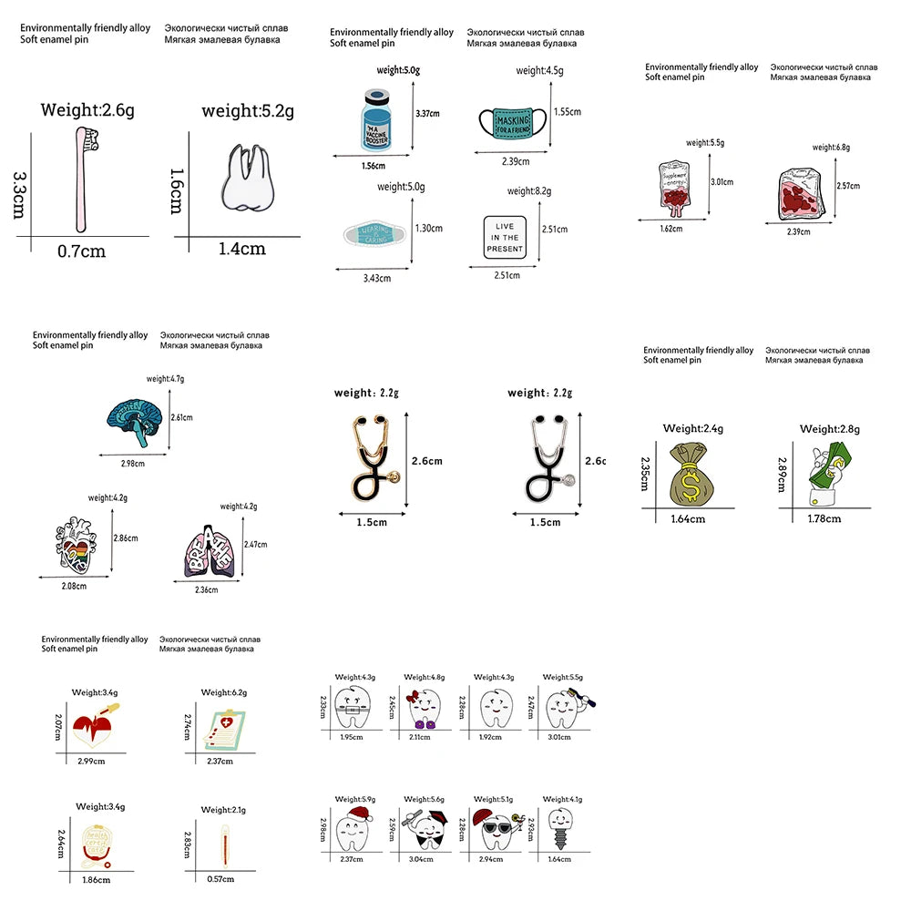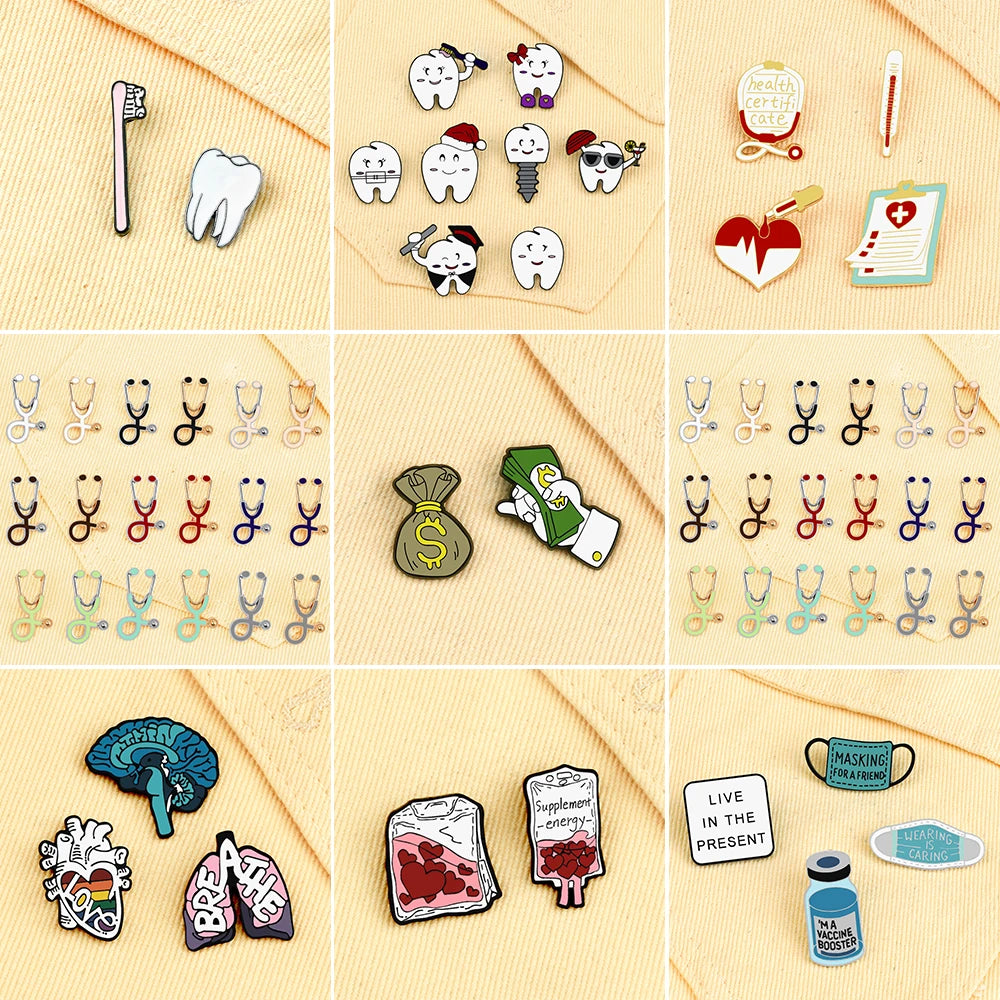 2-9Pcs/Set Cute Cartoon Tooth Brooch Doctor Nurse Mini Stethoscope Thermometer Enamel Pins Lapel Pin Badge Jewelry Gift Dentist