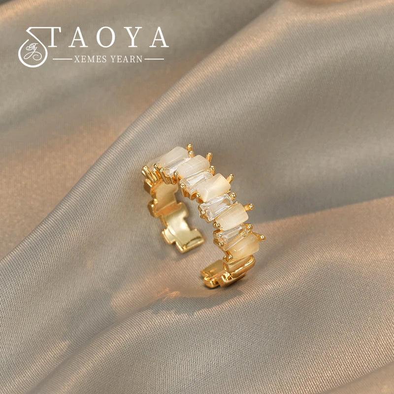 2025 New Design Opals Zircon Juxtaposed With Gold Colour Rings Luxury Jewelry Party For Women Girls Fashion Set Accessories Gift