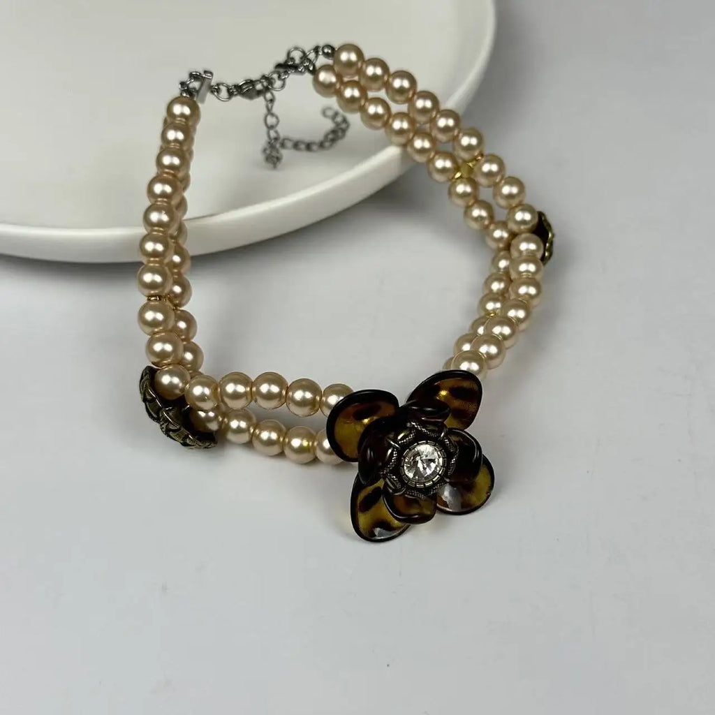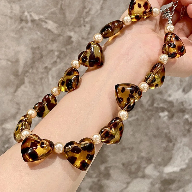 2025 New Leopard Print Heart-shaped Pearl Beaded Necklace