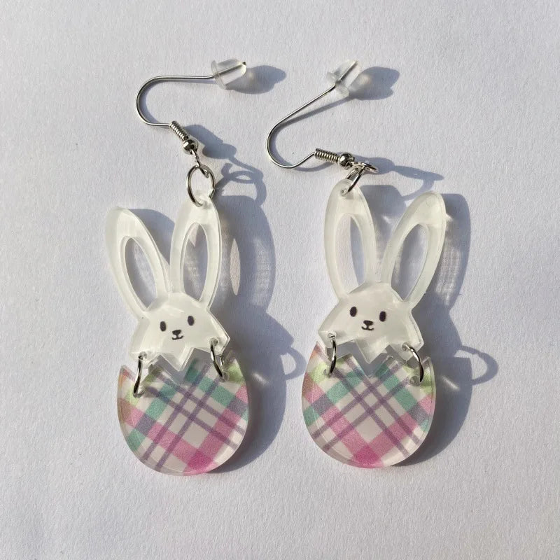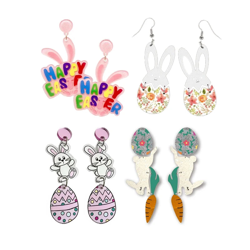 2025 Frühling FROHE OSTERN Hase Ohrringe für Frauen Niedliche Cartoon-Kaninchenohren Karotte Osterei Acryl Baumeln Ohrring Party