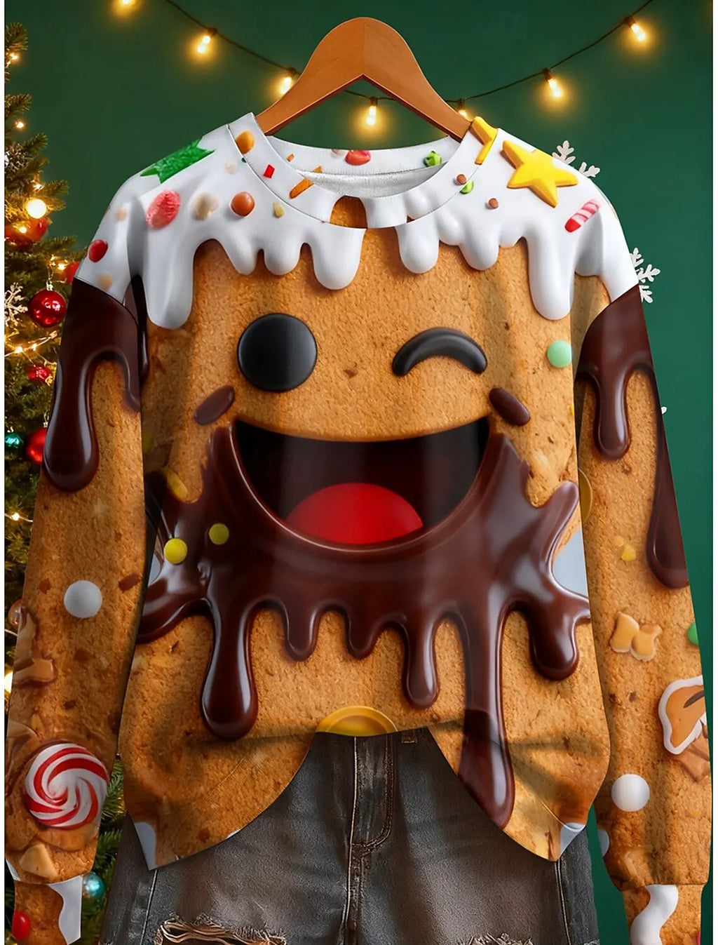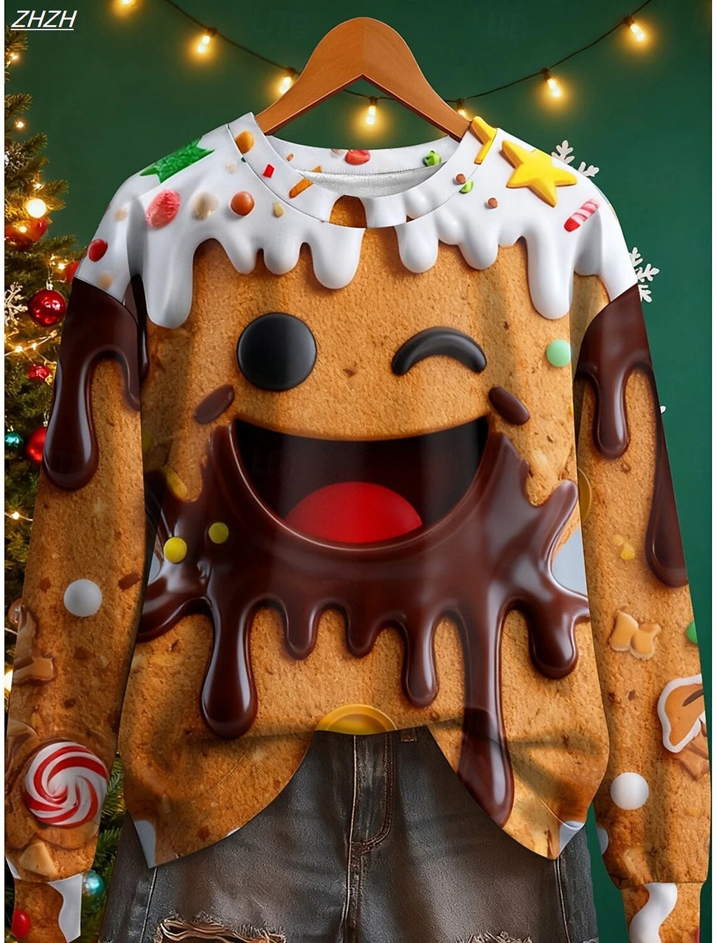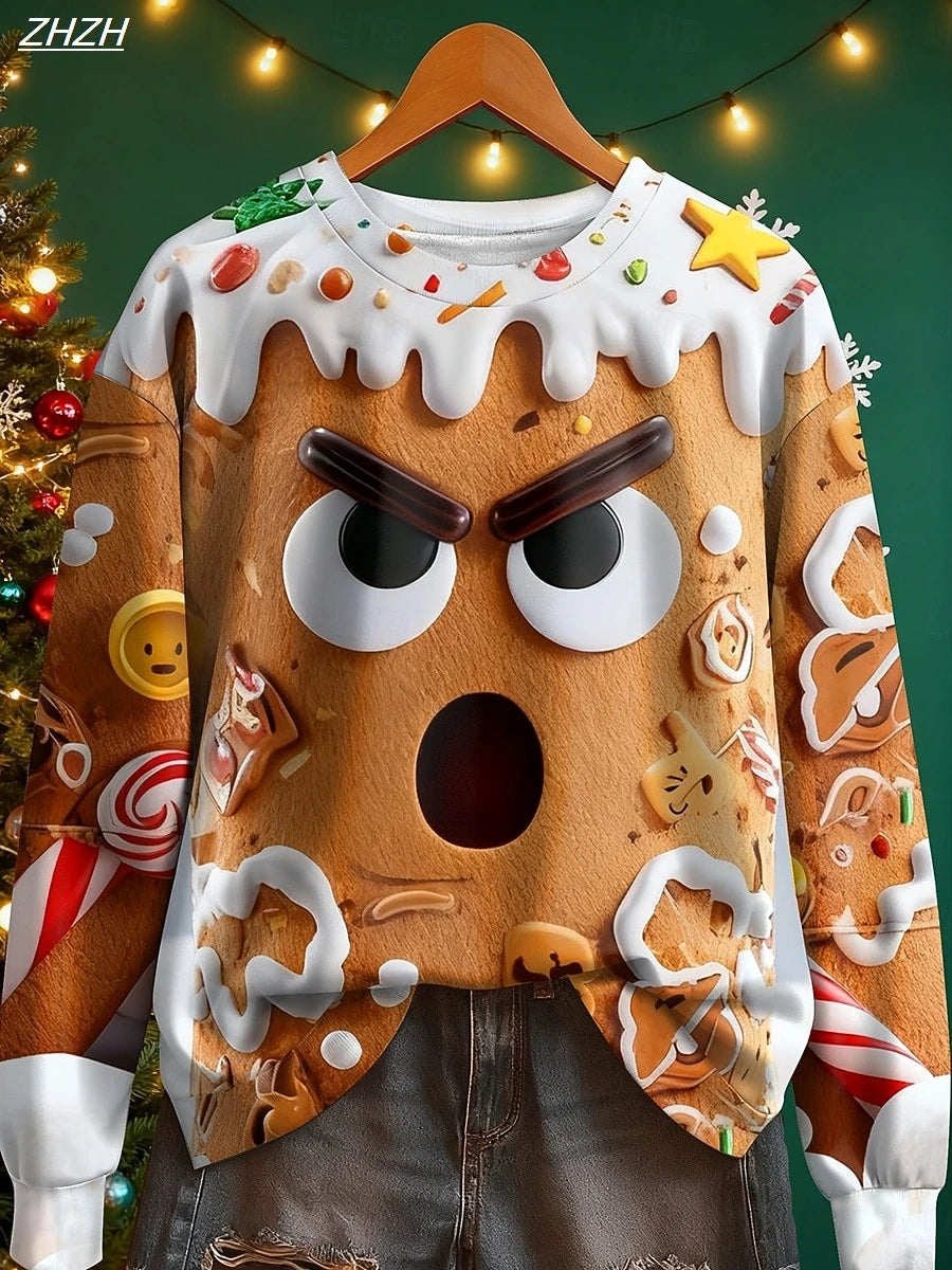 2025 Women's Christmas Face Print Sweatshirt, Holiday Home Wear, Festive Street Style, Fall Winter Casual Crewneck Pullover