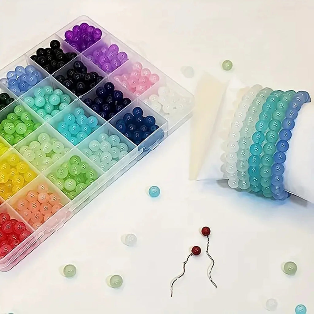 24color/1box 8mm Glass Round Beads DIY Bracelet Necklace Jewelry Accessories (Random Color)