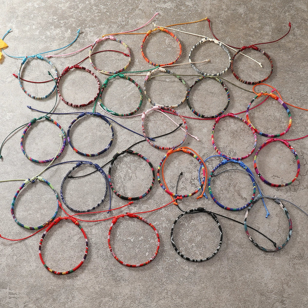 24pcs Bohemian Style Women Bracelets Set, Random Colorful Cloth Art Friendship Surf Bracelet For Men Women