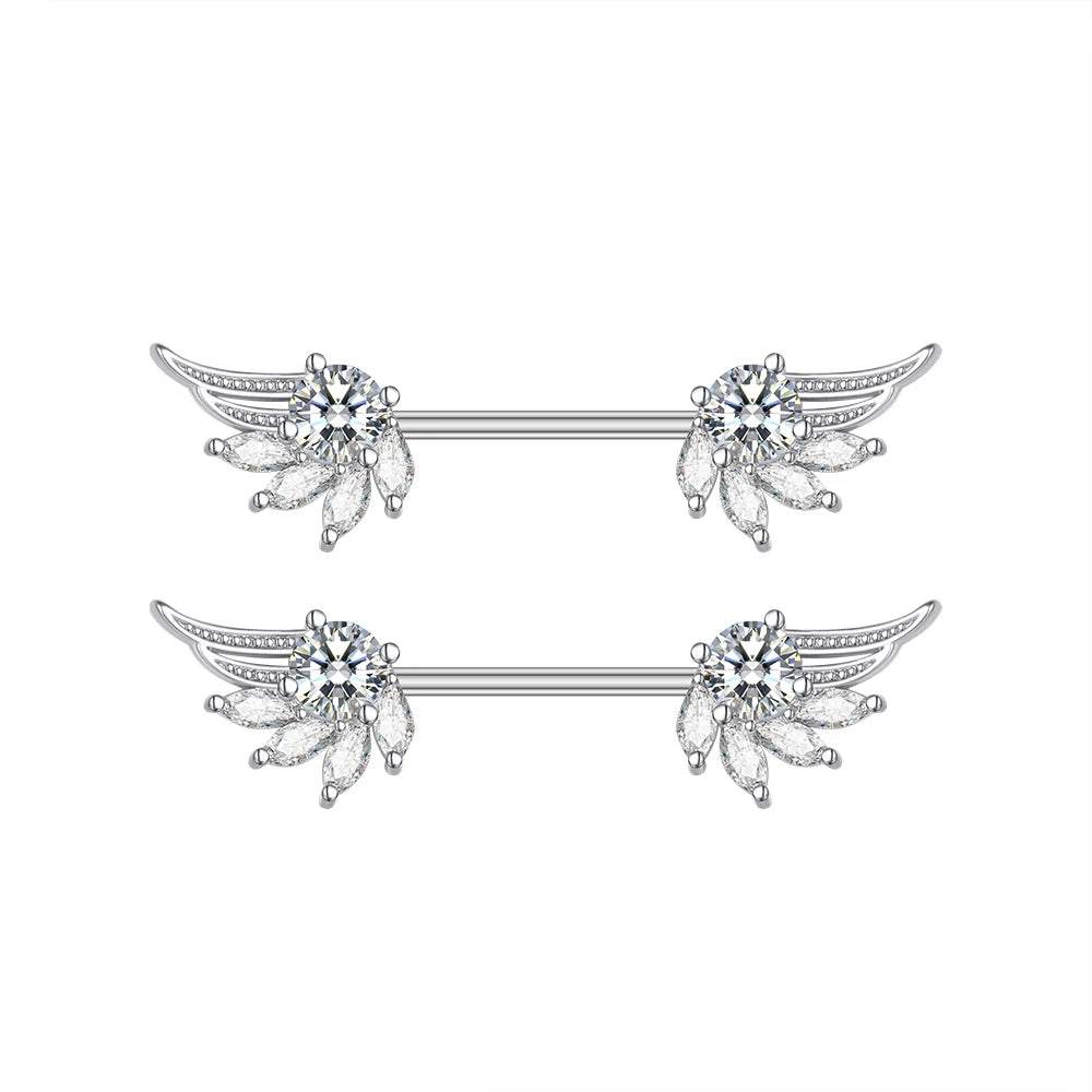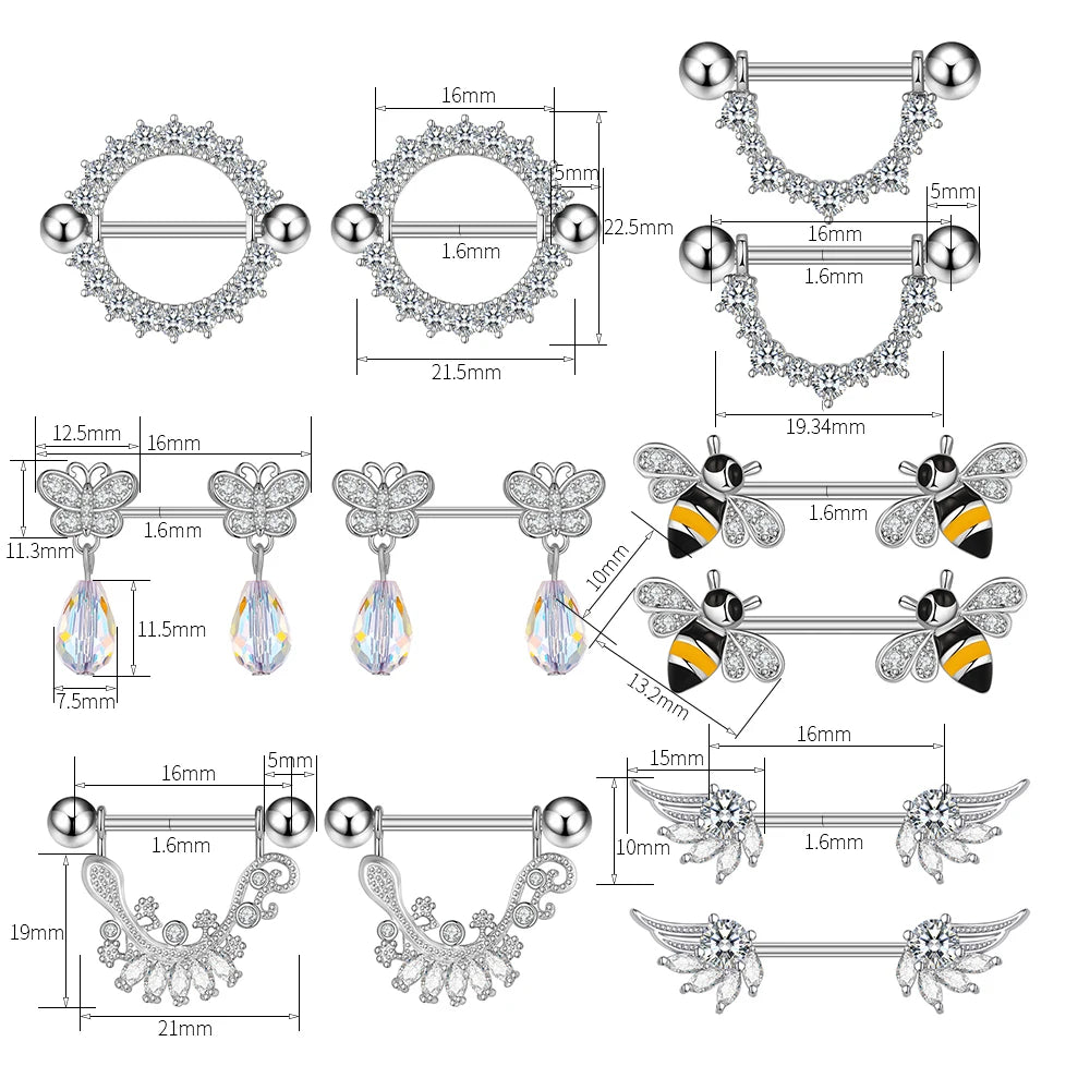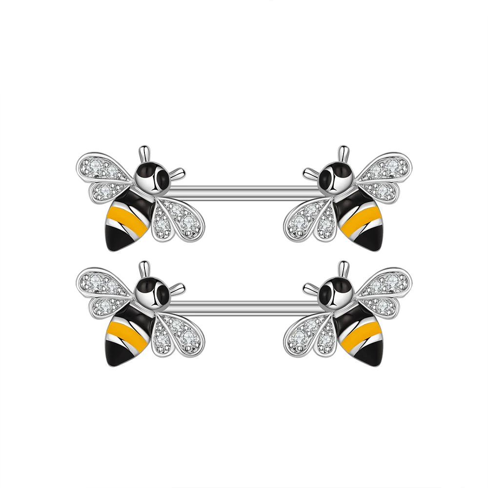 2 STK 14G Biene Gecko Flügel Brustwarzenringe Schildabdeckung Barbell Titanstahl Brustwarzenpiercing für Frauen Brust Körperpiercings Schmuck