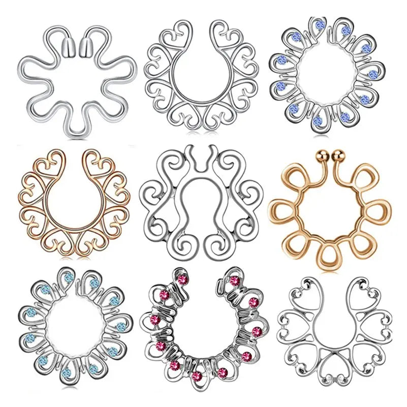 2pcs Stianless Steel Flower Heart Nipple Rings Fake Piercing Jewelry Women Sexy Nail Clips Nipple Clamps Pierced Body Jewelry
