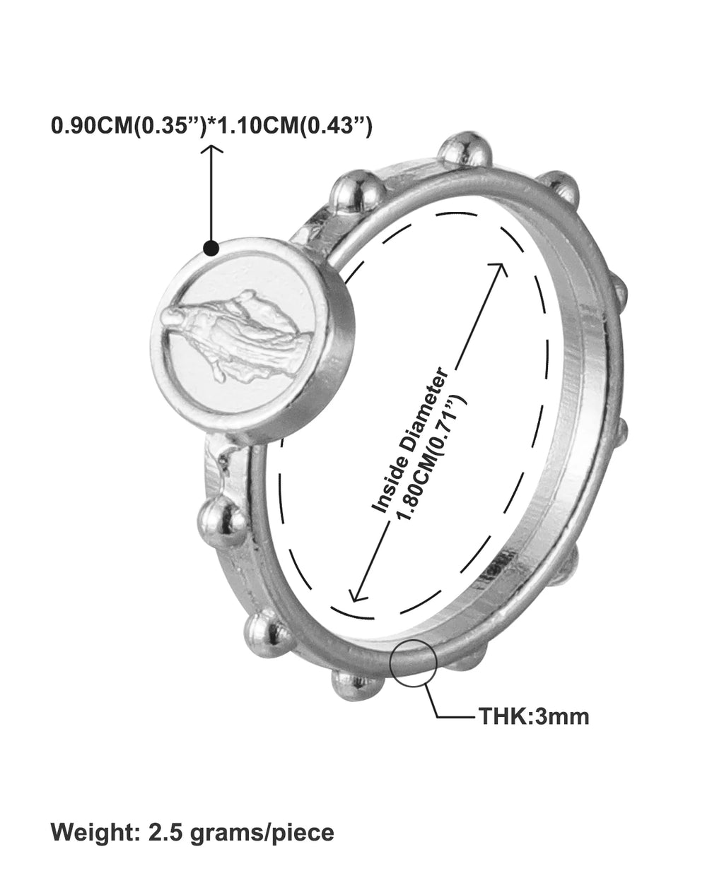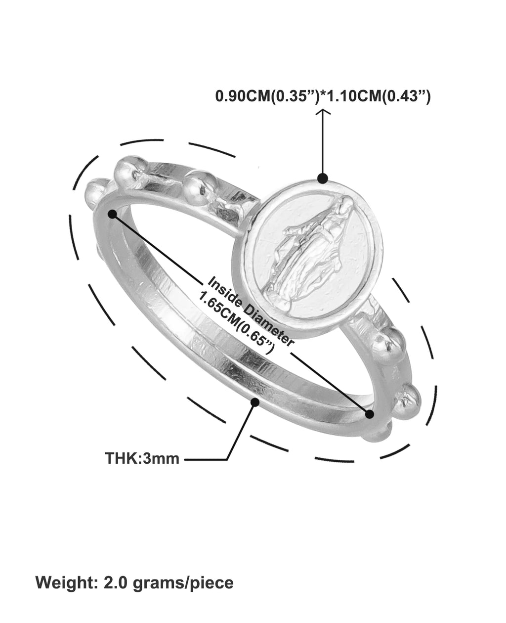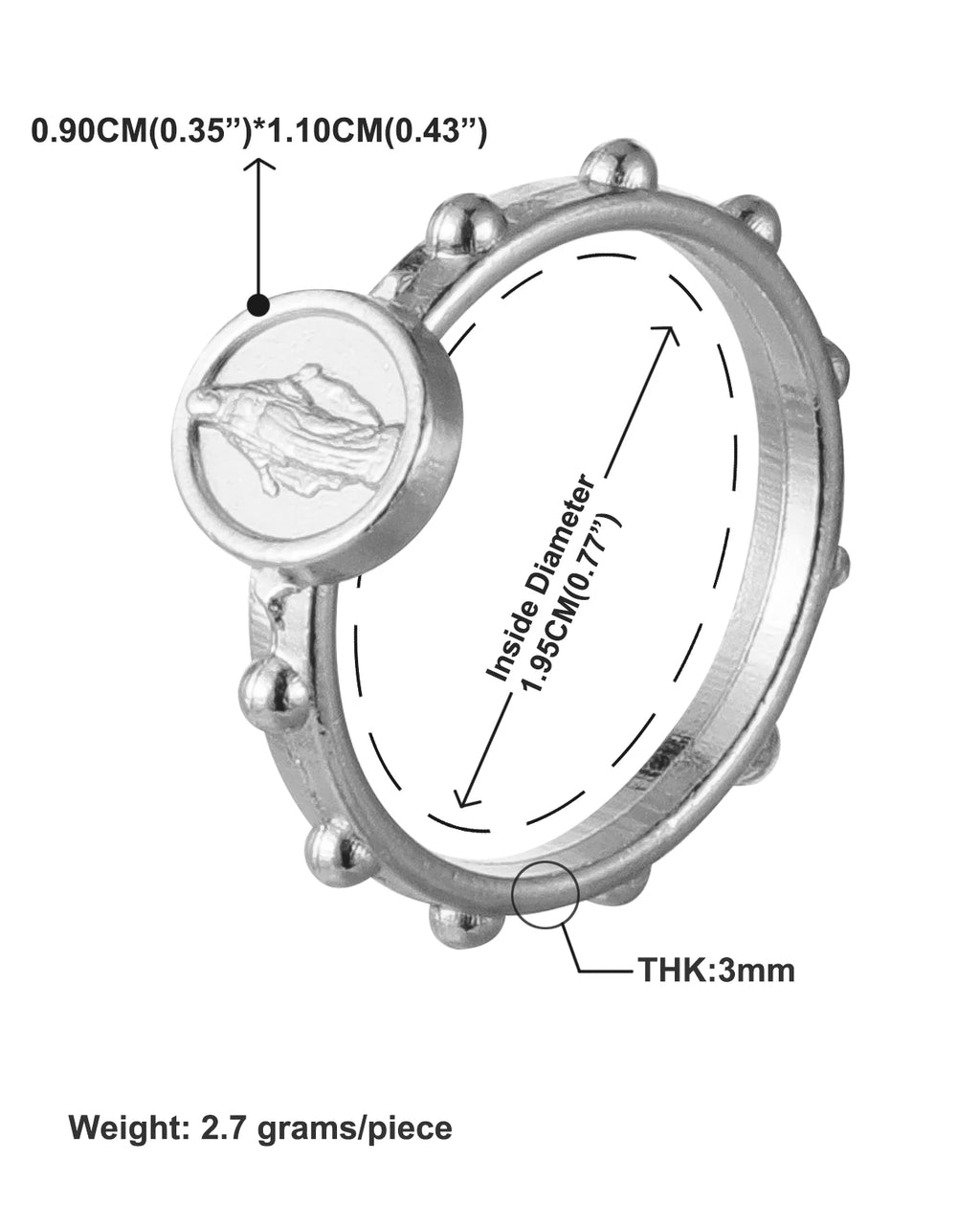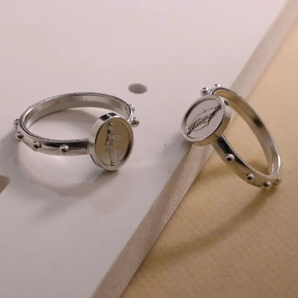 30Pcs Catholic Medalla Milagrosa Rosary Ring Our Lady Virgin Mary Medal Portable Finger Ring Jewelry for One Decade Rosary