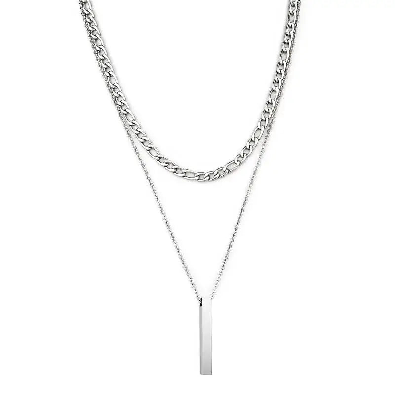 3D Vertical Bar Necklaces for Men Two Layer Stainless Steel Geometric Pendant Snake Chain Cuban Chain Fashion Necklace