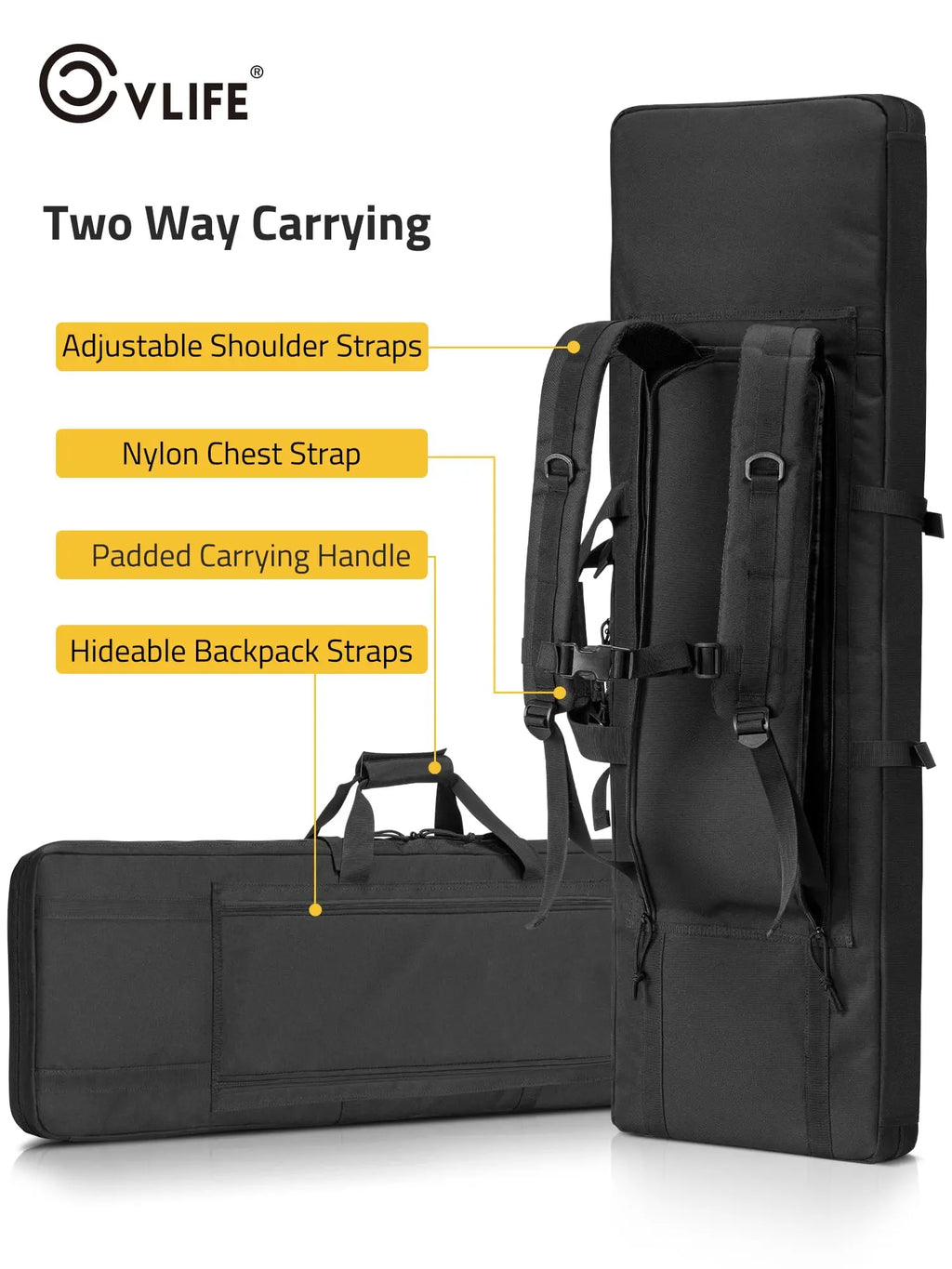 42 Double Soft Rifle Case Tactical Long Gun Bag Storage Transportation Backpack Outdoor Hunting Shooting Range Black