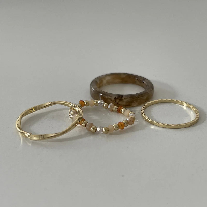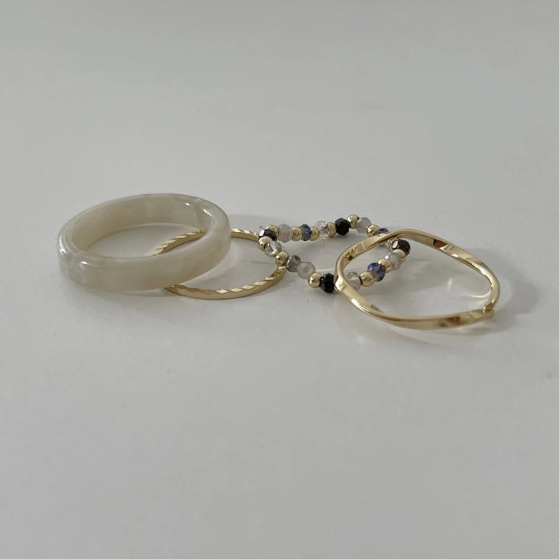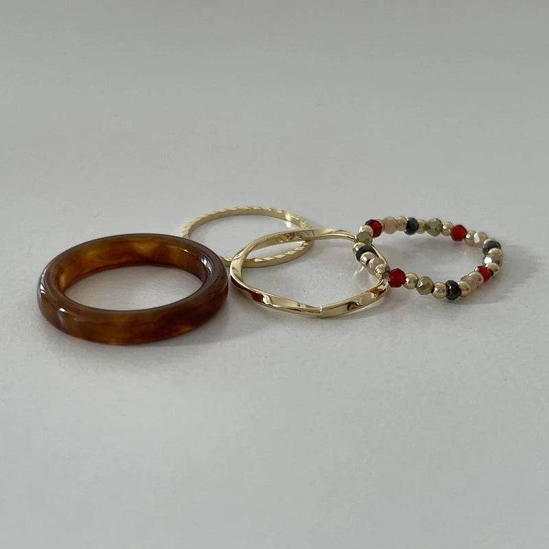 4Pcs Colorful Beads Resin Metal Irregular Lines Rings for Women Retro Geometric Acrylic Bead Knuckle Joint Ring Set Jewelry Gift