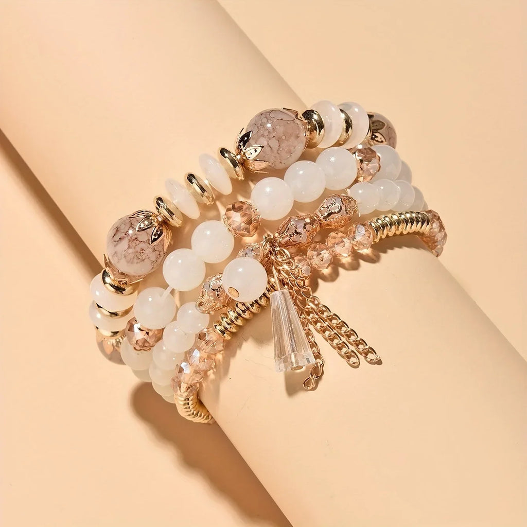 4pcs set Bohemian Versatile Bracelets Beaded Stretch Wristband Gifts Multi-layer Crystal Agate Bracelet Summer Fashion Jewelry