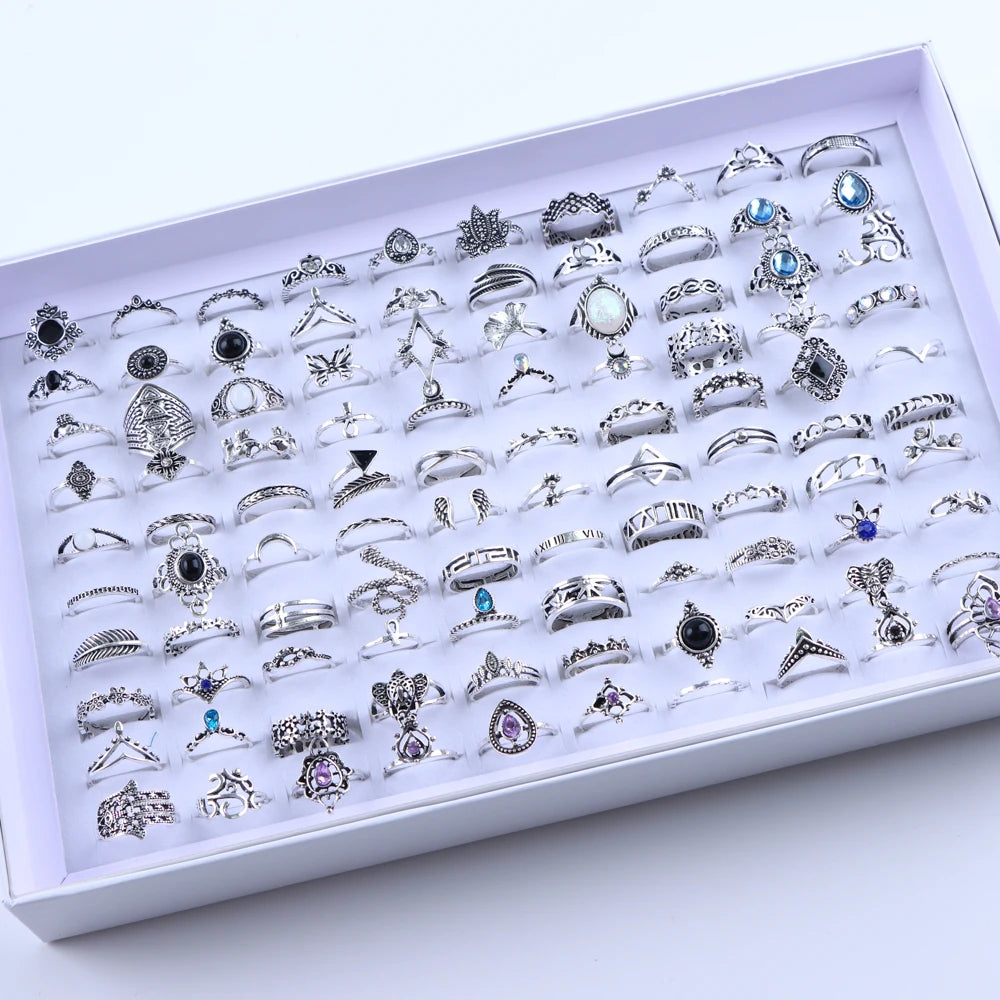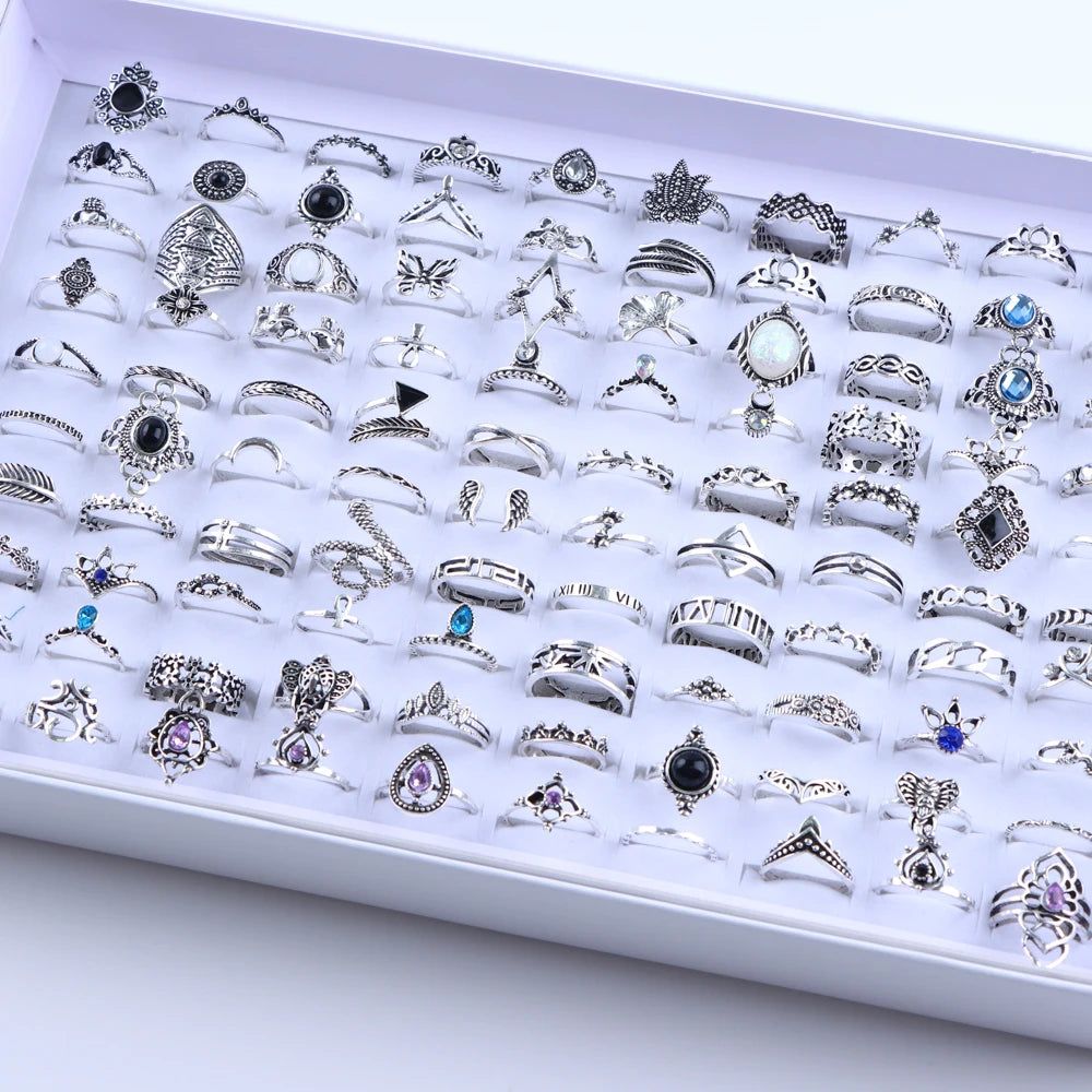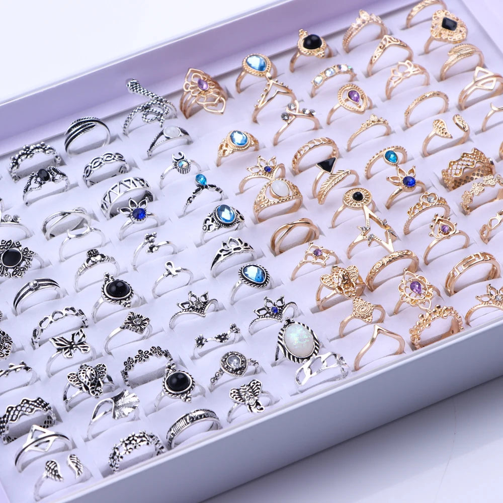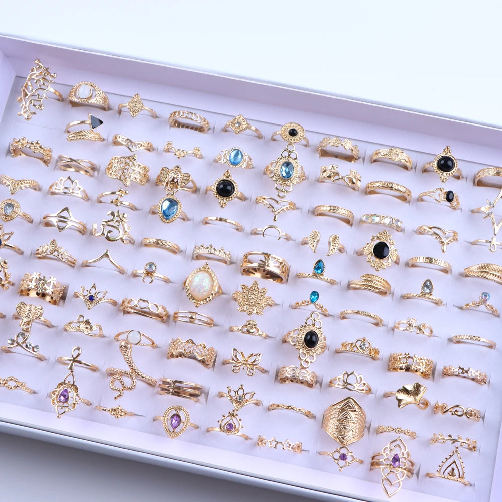 50/100 teile/los Mode Hohl Sterne Crown Liebe Gold Überzogene Metall Finger Ringe Für Frauen Mischen Stil Hochzeit Schmuck Party Geschenke