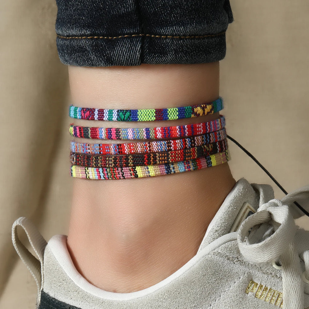 8pcs Bohemian Style Weaving Foot Rope Set, Random Color Cloth Art Friendship Surfing Foot Rope Female