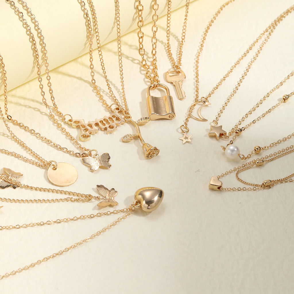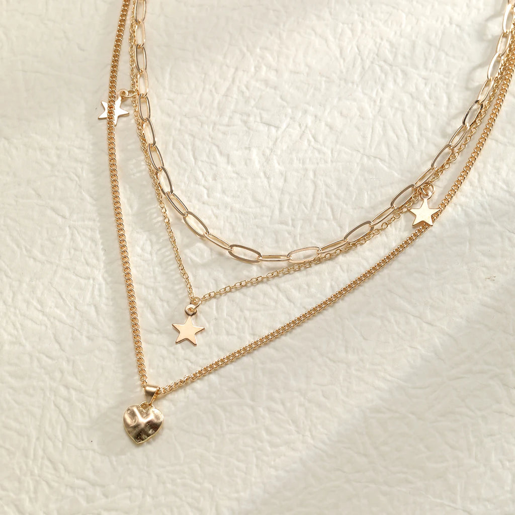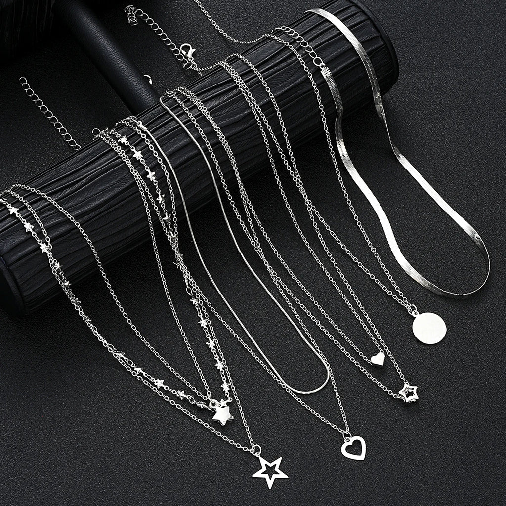 9 Pcs Simple Choker Necklaces for Women Fashion Love Heart Star Pendant Layered Necklace Jewelry Gift European and American 2024