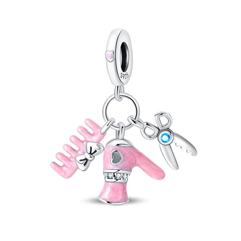 925 Silver Charms Beads Fit 3mm Original Bracelet Game Machine Box Afternoon Tea Dessert Romantic Pink Pendant DIY Jewelry