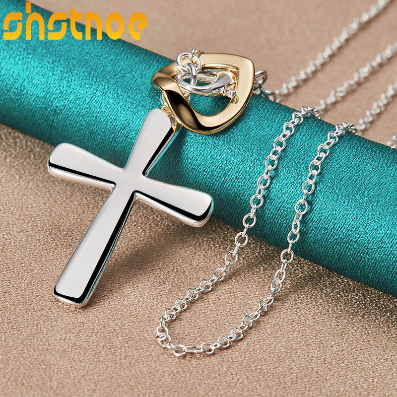 925 Sterling Silver 16-30 Inch Chain Glossy Cross Pendant Necklace For Man Women Engagement Wedding Fashion Charm Jewelry