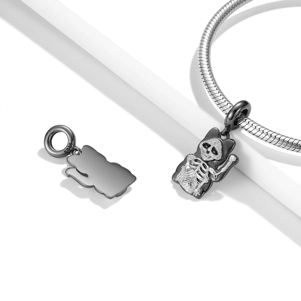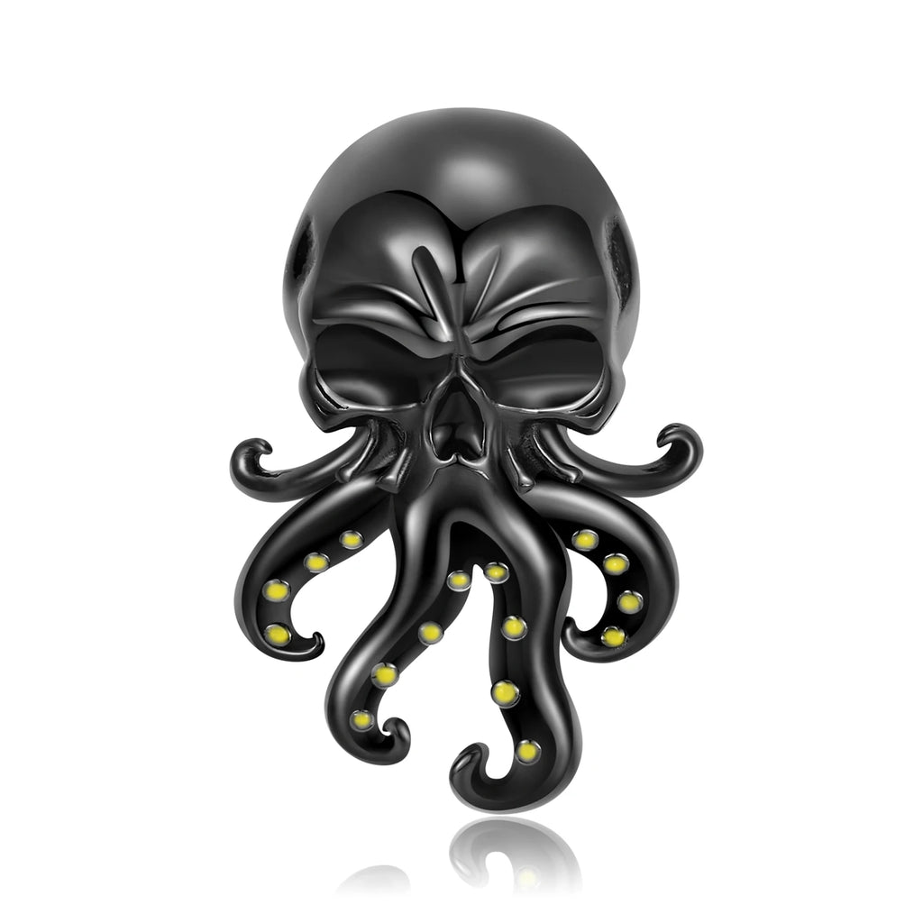 925 Sterling Silver Black Heart Left Right Face Butterfly Octopus Skull Halloween Beads for Charms Bracelet Pendant Diy Bracelet
