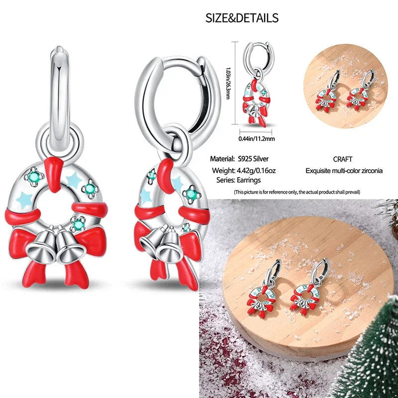 925 Sterling Silver Christmas Blue Snowflakes Tassel Diamond Earrings Red Bow for Women Creative Jewelry Christmas Themed Gifts