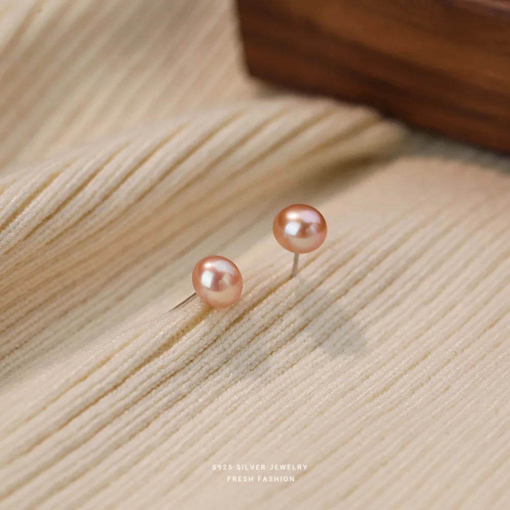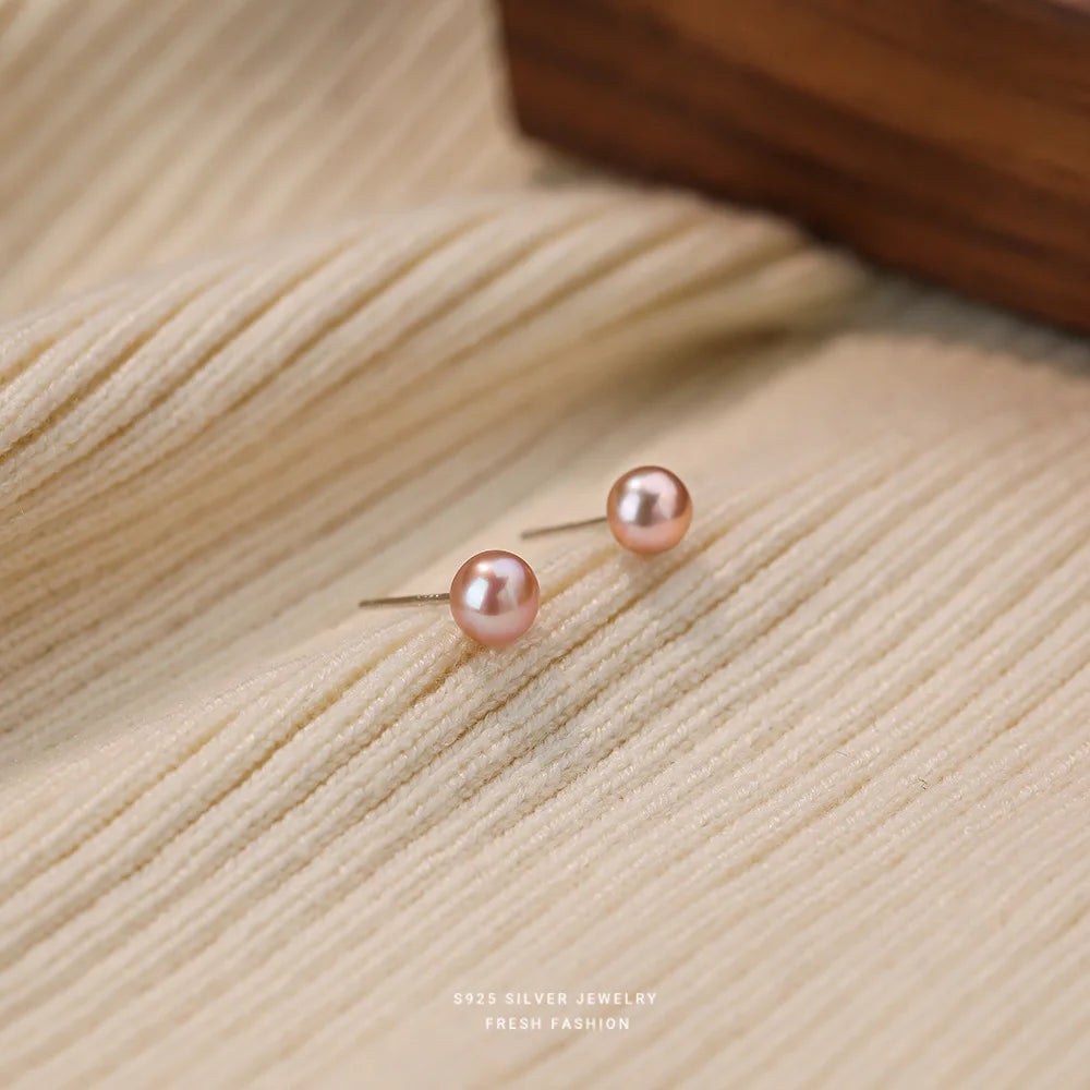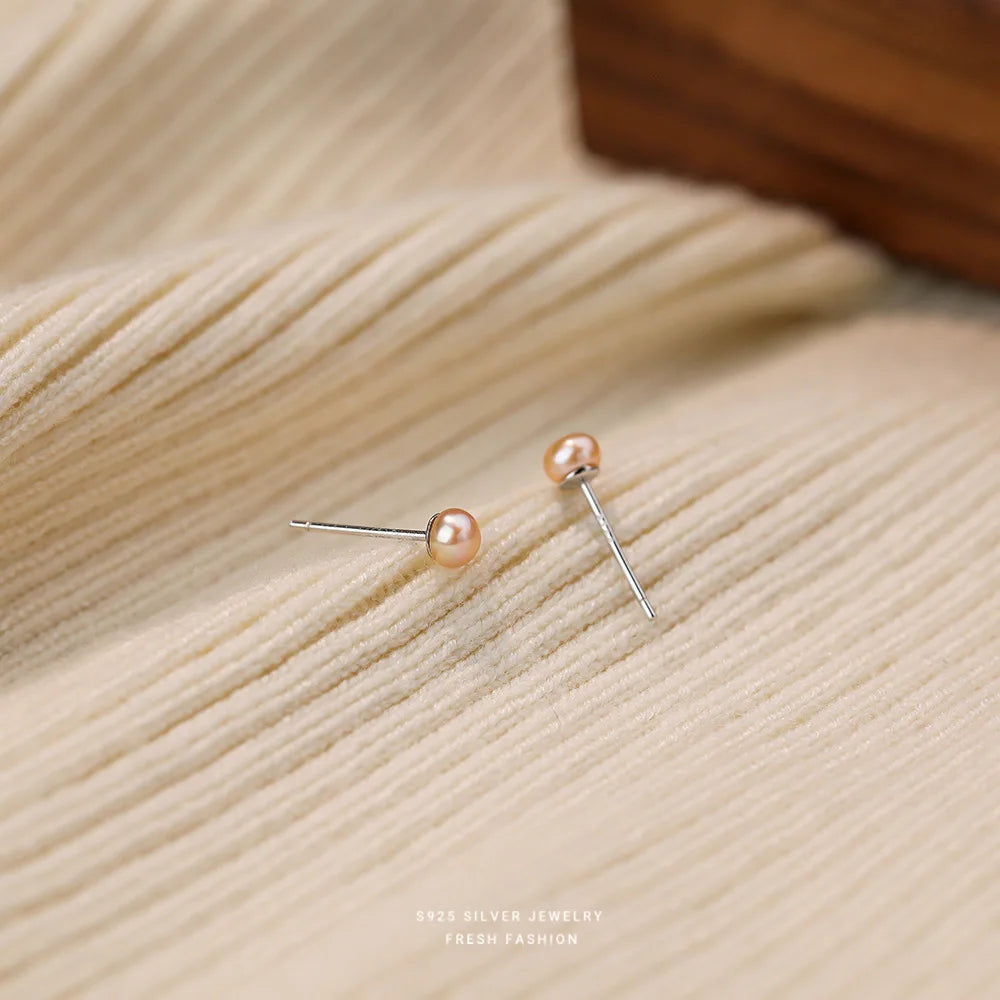 925 Sterling Silber Elegante Natürliche Süßwasser Kleine Perlen Ohrstecker Klassischer Basic Schmuck Für Frauen Geburtstagsgeschenke