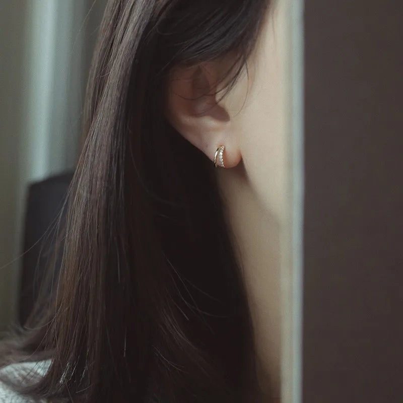 925 Sterling Silber Europäische Kreative Pavé Zirkon Ohr Knochen Ohrstecker Frauen Klassische Mode 14k Vergoldung Schmuck Geschenk