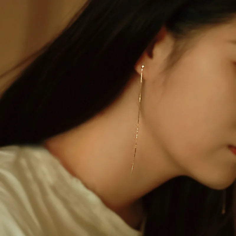 925 Sterling Silber Mode Einzelner Zirkon Lange Quaste Ohr Draht Ohrring für Frauen Schöne Hochzeit Partei Schmuck Zubehör