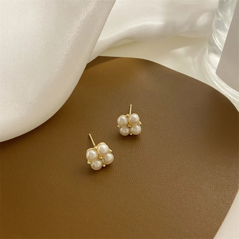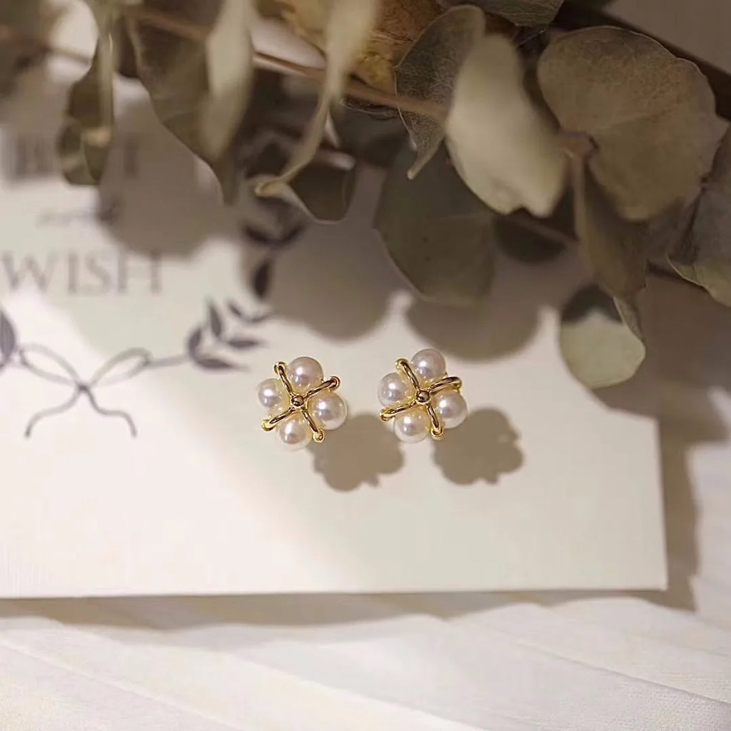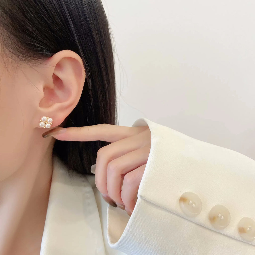 925 Sterling Silber Vier Perlen Ohrring für Frauen Französisch Temperament Exquisite Hochzeit Party Schmuck Zubehör