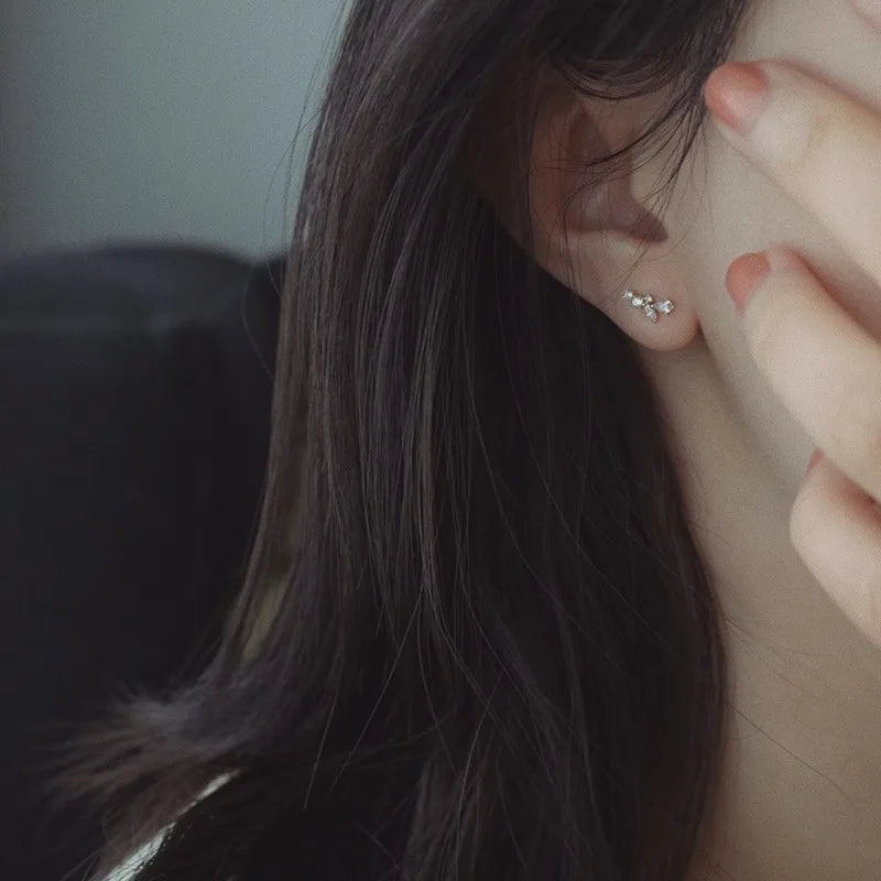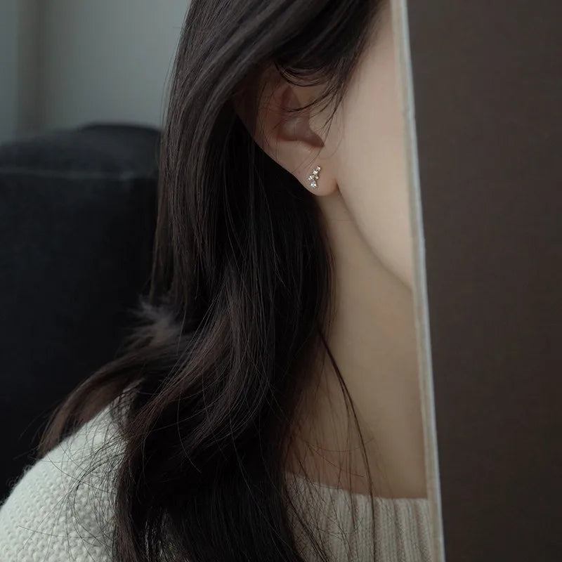 925 Sterling Silber Koreanische Einfache Pavé Kristall Malt Stud Ohrringe Frauen Licht Luxus Temperament Hochzeit 14k Gold Schmuck