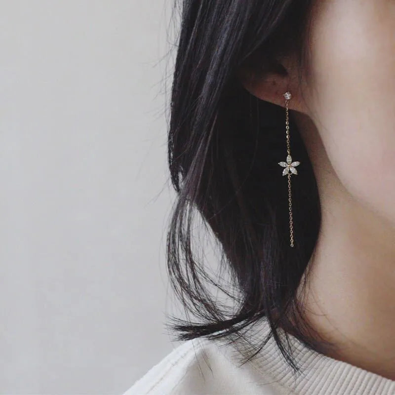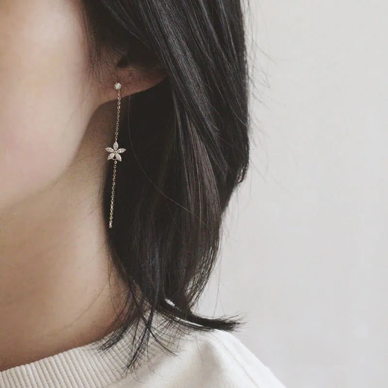 925 Sterling Silber Überzogene 14K Gold Lange Quaste Zirkon Blume Ohrringe fou frauen Süße Temperament Hochzeit Schmuck Zubehör