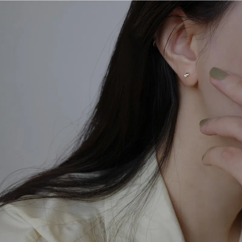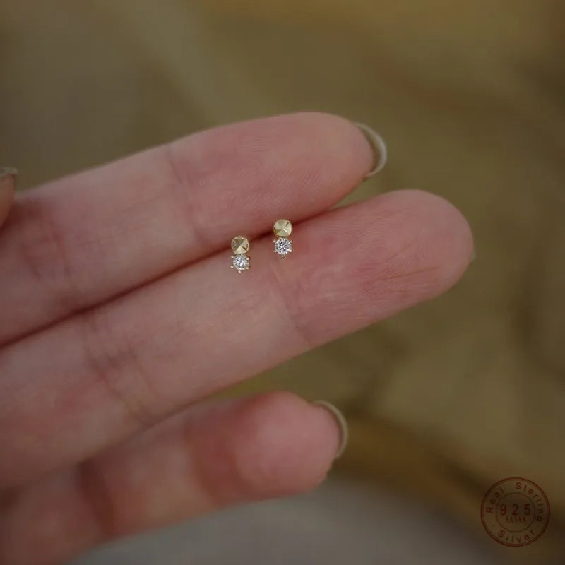 925 Sterling Silber vergoldet 14 Karat Gold Mini Facettierte Zirkon Ohrringe für Frauen Koreanischer Temperamentschmuck
